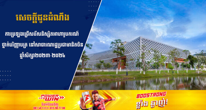 រាជធានីភ្នំពេញ៖ យោងតាមការចុះផ្សាយរបស់ ក្រសួងអប់រំ យុវជន និងកីឡា នៅថ្ងៃទី១៧ ខែមីនា ឆ្នាំ២០២៣ បានចេញសេចក្ដីជូនដំណឹង ស្ដីពីការប្រឡងជ្រើសរើសនិស្សិតអាហារូបករណ៍ ថ្នាក់បរិញ្ញាបត្រទៅសិក្សានៅ Southern University of Science and Technology (SUSTech) នៅសាធារណរដ្ឋប្រជាមានិតចិន សម្រាប់ឆ្នាំសិក្សា២០២៣-២០២៤។ ក្រសួងអប់រំ យុវជន និងកីឡា សូមជូនដំណឹងដល់សាធារណជនទាំងពីរភេទ ជ្រាបថា៖ ក្នុងឆ្នាំ២០២៣នេះ សាកលវិទ្យាល័យ Southern University of Science and Technology (SUSTech)