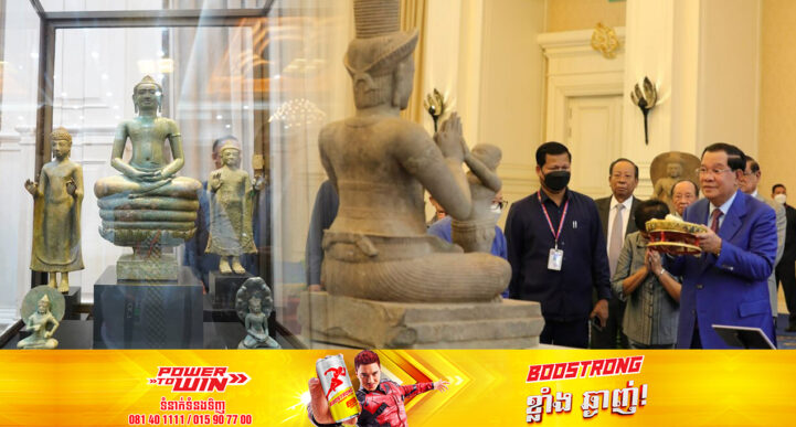 រាជធានីភ្នំពេញ៖ នៅថ្ងៃទី១៧ ខែមីនា ឆ្នាំ២០២៣ យោងតាមការចុះផ្សាយរបស់ ក្រសួងវប្បធម៌ និងវិចិត្រសិល្ប: បានចេញសេចក្ដីប្រកាសព័ត៌មានស្តីពីការរៀបចំពិធីទទួលវត្ថុបុរាណខ្មែរ ដែលបានប្រគល់ជូនព្រះរាជាណាចក្រកម្ពុជាវិញ។ ក្រសួងវប្បធម៌និងវិចិត្រសិល្បៈ មានកិត្តិយសសូមជម្រាបជូនសាធារណជនជ្រាបថា នាព្រឹកថ្ងៃទី១៧ ខែមីនា ឆ្នាំ២០២៣ ក្រសួងវប្បធម៌និងវិចិត្រសិល្បៈបានរៀបចំ “ពិធីទទួលវត្ថុបុរាណខ្មែរ ដែលបានប្រគល់ជូនព្រះរាជាណាចក្រកម្ពុជាវិញ” ក្រោមអធិបតីភាពដ៏ខ្ពង់ខ្ពស់ សម្តេចអគ្គមហាសេនាបតីតេជោ ហ៊ុន សែននាយករដ្ឋមន្រ្តីនៃព្រះរាជាណាចក្រកម្ពុជា នៅវិមានសន្តិភាព រាជធានីភ្នំពេញ។ វត្ថុបុរាណដែលទទួលបានមកវិញនេះ គឺជាមរតកវប្បធម៌ជាតិដ៏មានតម្លៃពុំអាចកាត់ថ្លៃបាន និងជាព្រលឹងដូចតាខ្មែរជាច្រើនជំនាន់ ដែលត្រូវបានគេលួចនាំចេញដោយខុសច្បាប់ទៅក្រៅប្រទេស នៅក្នុងអំឡុងនៃសង្រ្គាមស៊ីវិលរ៉ាំរ៉ៃ និងអសន្តិសុខ ដែលបានកើតឡើងនៅកម្ពុជានាពេលកន្លងទៅនេះ។ សន្តិភាពដែលកើតចេញពីនយោបាយ ឈ្នះ-ឈ្នះ ក្រោមការដឹកនាំប្រកបដោយគតិបណ្ឌិតរបស់ សម្តេច