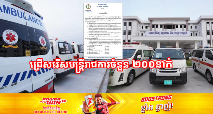 រាជធានីភ្នំពេញ៖ យោងតាមការចុះផ្សាយរបស់ ក្រសួងសុខាភិបាល នៅថ្ងៃទី១៦ ខែកុម្ភៈ ឆ្នាំ២០២៣ បានចេញសេចក្តីជូនដំណឹង ក្រសួងសុខាភិបាលត្រូវការជ្រើសរើសមន្រ្តីរាជការ ចំនួន ២០០នាក់ តាមរយៈការប្រឡងប្រជែង ឲ្យចូលបម្រើការងារនៅ មន្ទីរពេទ្យជាតិ តេជោសន្តិភាព សម្រាប់ឆ្នាំ២០២៣។ ក្រសួងសុខាភិបាល សូមជម្រាបជូនដំណឹងជាសាធារណៈ ដល់បេក្ខជន បេក្ខនារី ជាសិស្ស និស្សិត និងមន្ត្រីរាជការ ទូទៅឱ្យបានជ្រាបថា ក្រសួងសុខាភិបាលត្រូវការជ្រើសរើសមន្ត្រីរាជការ ចំនួន ២០០នាក់ តាមរយៈការប្រឡងប្រជែង ឱ្យចូល បម្រើការងារនៅ “មន្ទីរពេទ្យជាតិ តេជោសន្តិភាព” សម្រាប់ឆ្នាំ២០២៣នេះ តាមលក្ខខណ្ឌដូចខាងក្រោម៖ ក/លក្ខខណ្ឌនៃការជ្រើសរើស៖