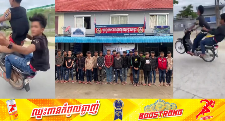 រាជធានីភ្នំពេញ៖ យោងតាមការចុះផ្សាយរបស់ កងរាជអាវុធហត្ថរាជធានីភ្នំពេញ បានឱ្យដឹងថា ក្រុមក្មេងទំនើងសរុបចំនួន ២២នាក់ រួមនិងម៉ូតូ ១២គ្រឿង ត្រូវបានកម្លាំងមូលដ្ឋានអាវុធហត្ថខណ្ឌជ្រោយចង្វារ រាជធានីភ្នំពេញ ធ្វើការបង្ក្រាបបាន កាលពីថ្ងៃទី២៨ ខែកក្កដា ឆ្នាំ២០២៤ នៅលើដងផ្លូវនៃកោះដាច់ ស្ថិតភូមិចុងកោះ សង្កាត់កោះដាច់ ខណ្ឌជ្រោយចង្វារ រាជធានីភ្នំពេញ ខណៈដែលកំពុងធ្វើការបង្ហោះម៉ូតូ ដោយគិតថាស្ងាត់និងមិនមានសមត្ថកិច្ចទៅដល់ ហើយក៏មិនខ្វល់ពីហានិភ័យ នៃអាយុជីវិតផ្ទាល់ខ្លួន ក៏ដូចជាសុវត្ថិភាពរបស់អ្នកធ្វើដំណើរតាមដងផ្លូវផងដែរ។ សកម្មភាពទំនើងទាំងឡាយណាដែលបង្កការភ័យខ្លាចដល់អ្នកជុំវិញ ក៏ដូចជាបង្កភាពអនាធិបតេយ្យក្នុងសង្គម ក្នុងភូមិសាស្ត្ររាជធានីភ្នំពេញ ត្រូវបានលោកឧត្តមសេនីយ៍ឯក រ័ត្ន ស៊្រាង មេបញ្ជាការរង កងរាជអាវុធហត្ថលើផ្ទៃប្រទេស មេបញ្ជាការ កងរាជអាវុធហត្ថរាជធានីភ្នំពេញ