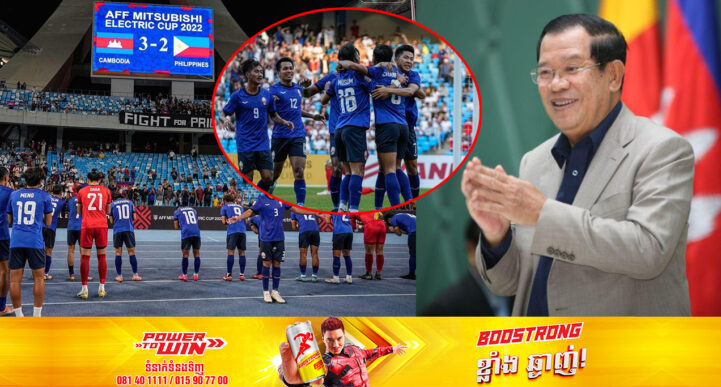 រាជធានីភ្នំពេញ៖ យោងតាមគណនីហ្វេសប៊ុកផ្ទាល់របស់ សម្តេចតេជោ ហ៊ុន សែន នាយករដ្ឋមន្ត្រីនៃព្រះរាជាណាចក្រកម្ពុជា បានចូលរួមអបអរសាទរ ក្រុមជម្រើសជាតិកម្ពុជា រកបាន ៣ពិន្ទុពេញ ពីការប្រកួតបើកឆាកពានរង្វាន់ AFF Mitsubishi Electric Cup 2022 ពូល A ក្រោយយកឈ្នះក្រុមជម្រើសជាតិហ្វីលីពីន ៣-២ កាលពីយប់ថ្ងៃទី២០ ខែធ្នូ ឆ្នាំ២០២២ម្សិលមិញនេះ។ សម្តេចតេជោ ហ៊ុន សែន បានបង្ហោះសារមានខ្លឹមសារទាំងស្រុងយ៉ាងដូច្នេះថា «អបអរសាទរ ក្រុមជម្រើសជាតិកម្ពុជា រកបាន៣ពិន្ទុពេញ ពីការប្រកួតបើកឆាកពានរង្វាន់ AFF Mitsubishi Electric