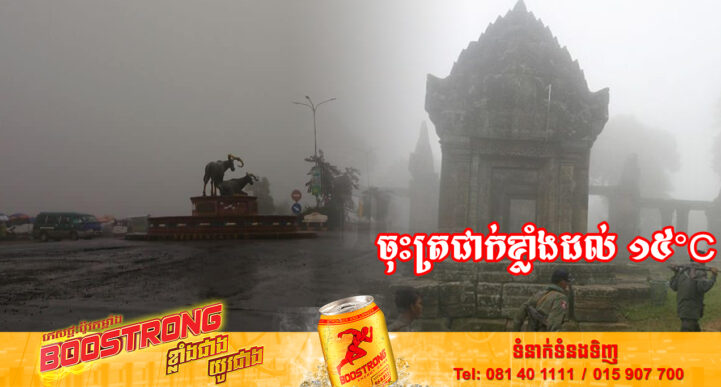 រាជធានីភ្នំពេញ៖ យោងតាមការចុះផ្សាយរបស់ ក្រសួងធនធានទឹក និងឧតុនិយម នៅថ្ងៃទី១៦ ខែធ្នូ ឆ្នាំ២០២២ បានចេញសេចក្ដីជូនដំណឹងបន្ថែម ស្ដីពីស្ថានភាពធាតុអាកាសចាប់ពីថ្ងៃទី១៨ ដល់ថ្ងៃទី២០ ខែធ្នូ ឆ្នាំ២០២២ បានឱ្យដឹងថា៖ ស្ថានភាពអាកាសធាតុជាបន្តនៅតែសង្កេតឃើញថា ទ្រនុងសម្ពាធខ្ពស់ពីចិនបានធ្លាក់យ៉ាងគំហុគមកក្រោមជាមួយនឹងខ្យល់មូសុងបក់ក្នុង ល្បឿនខ្លាំង ។ ស្ថានភាពបែបនេះនឹងធ្វើឲ្យ៖ ចាប់ពីថ្ងៃទី ១៨-២០ ខែធ្នូ ធាតុអាកាសអាចចុះត្រជាក់ខ្លាំង ជាពិសេសនៅបណ្តាខេត្តនៅតំបន់ភ្នំ និងជាប់ជួរភ្នំដងរែកនិងខ្ពង់រាបភាគឦសាន។ – ខេត្តមណ្ឌលគិរី រតនគិរី ព្រះវិហារ ឧត្តរមានជ័យ និងខេត្តប៉ៃលិន ស៊ីតណ្ហភាពអប្បបរមាអាចនឹងធ្លាក់ចុះក្នុងរង្វង់ពី ១៥-១៦°C ។ –