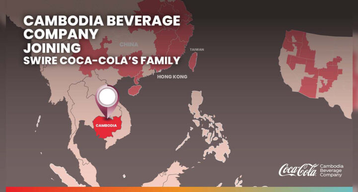 (ហុងកុង)៖ ថ្ងៃទី២៥ ខែវិច្ឆិកា ឆ្នាំ២០២២ ក្រុមហ៊ុន Swire Coca-Cola Limited ជាបុត្រសម្ព័ន្ធនៅក្រោមការគ្រប់គ្រងកាន់កាប់ទាំងស្រុងរបស់ក្រុមហ៊ុន Swire Pacific Limited (HKSE: 00019/00087) បានប្រកាសនៅថ្ងៃនេះ អំពីការបញ្ចប់បែបបទនីតិវិធីជាស្ថាពរក្នុងការទិញក្រុមហ៊ុនបុត្រសម្ព័ន្ធកូកា-កូឡា ដែលផលិតនិងចែកចាយនៅកម្ពុជា។ Swire Coca-Cola នឹងទទួលកាន់កាប់សិទ្ធិជាម្ចាស់ក្រុមហ៊ុន Cambodia Beverage Company Ltd. និងចាប់ផ្តើមដឹកនាំអាជីវកម្មពីថ្ងៃទី២៦ ខែវិច្ឆិកា ឆ្នាំ២០២២ តទៅ។ ការទិញយកក្រុមហ៊ុននេះ ជាការបោះជំហានដំបូងរបស់ក្រុមហ៊ុន Swire Coca-Cola ចូលតំបន់អាស៊ីអាគ្នេយ៍ ដើម្បីពង្រីកអាជីវកម្មក្នុងតំបន់ថ្មីមួយទៀត។