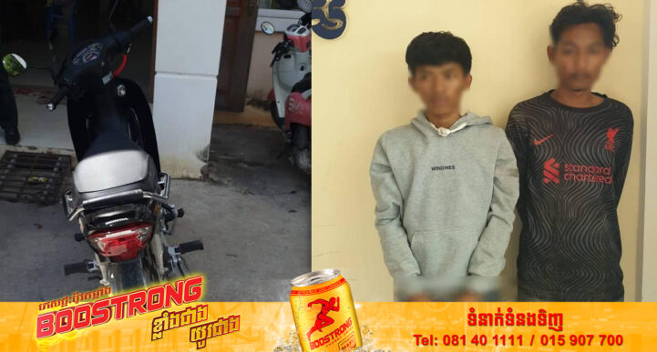 រាជធានីភ្នំពេញ៖ យោងតាមការចុះផ្សាយរបស់ ស្នងការដ្ឋាននគរបាលរាជធានីភ្នំពេញ បានឱ្យដឹងថា នៅថ្ងៃទី២៥ ខែវិច្ឆិកា ឆ្នាំ២០២២ វេលាម៉ោងប្រហែល១១ និង១០នាទី មានករណីលួច(ឆក់ខ្សែក) ជនសង្ស័យមានគ្នា ០៣នាក់ បានចេញធ្វើសកម្មភាពឆក់ត្រូវបានសមត្ថកិច្ចឃាត់ខ្លួនបាន ២នាក់រួមមាន៖ ១.ឈ្មោះ គង់ ផានីត ភេទប្រុស អាយុ ២០ឆ្នាំ មុខរបរមិនពិតប្រាកដ ស្នាក់នៅភូមិវិមានទ្រង់ សង្កាត់ក្រាំងធ្នង់ ខណ្ឌសែនសុខ រាជធានីភ្នំពេញ។ ២.ឈ្មោះ ហៀង សុខហៀង ភេទប្រុស អាយុ ២០ឆ្នាំ មុខរបរមិនពិតប្រាកដ ស្នាក់នៅភូមិវិមានទ្រង់ សង្កាត់ក្រាំងធ្នង់