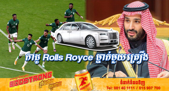 អារ៉ាប៊ីសាអូឌីត៖ ជ័យជំនះរបស់ក្រុមបាល់ទាត់ជម្រើសជាតិនៃប្រទេសអារ៉ាប៊ីសាអូឌីតទៅលើក្រុមបាល់ទាត់ជម្រើសជាតិនៃប្រទេសអាហ្សង់ទីននៅក្នុងព្រឹត្តិការណ៍បាល់ទាត់ពិភពលោក (World Cup) ២០២២ បានធ្វើឲ្យពិភពលោកមានការភ្ញាក់ផ្អើលយ៉ាងខ្លាំង ហើយវាក៏បានក្លាយជាប្រវត្តិសាស្ត្រដ៏អស្ចារ្យមួយសម្រាប់ប្រទេសអាស៊ីមួយនេះផងដែរ។ ក្រោយទទួលបានជ័យជំនះក្នុងការប្រកួតកីឡាជាប្រវត្តិសាស្រ្តនេះរដ្ឋាភិបាលអារ៉ាប៊ីសាអូឌីតបានសម្រេចរៀបចំឲ្យមានថ្ងៃឈប់ថ្នាក់ជាតិមួយ ដើម្បីអនុញ្ញាតឲ្យពលរដ្ឋអារ៉ាប៊ីសាអូឌីតរាប់លាននាក់អាចនាំគ្នារៀបចំពិធីអបអរសាទរចំពោះភាពជោគជ័យថ្មីក្នុងវិស័យកីឡាមួយនេះ។ ព្រះអង្គម្ចាស់ Mohammed bin Salman ជាងនេះទៅទៀតបើយោងតាមការចុះផ្សាយរបស់បណ្តាញសារព័ត៌មាន Indonesia Postsen បានឲ្យដឹងថា ក្រុមកីឡាករបាល់ទាត់អារ៉ាប៊ីសាអូឌីត ដែលជាតួអង្គសំខាន់ក្នុងការបង្កើតប្រវត្តិសាស្រ្តមួយនេះនឹងទទួលបានកាដូយ៉ាងគាប់ចិត្តពីសំណាក់ព្រះអង្គម្ចាស់ Mohammed bin Salman (MbS) នៃព្រះរាជាណាចក្រ អារ៉ាប៊ីសាអូឌីត ដោយកីឡាករទាំងអស់នឹងទទួលបានរថយន្តប្រណិតម៉ាក Rolls Royce Phantom ម្នាក់មួយគ្រឿង។ ប្រភពខាងលើបានបញ្ជាក់ថា រថយន្ត Rolls Royce