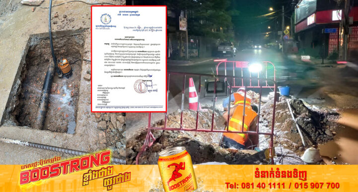 រាជធានីភ្នំពេញ៖ យោងតាមការចុះផ្សាយរបស់ រដ្ឋាករទឹកស្វយ័តក្រុងភ្នំពេញ នៅថ្ងៃទី១៩ ខែវិច្ឆិកា ឆ្នាំ២០២២ បានចេញសេចក្តីជូនដំណឹងស្តីពីការចុះស្រាវជ្រាវ និងជួសជុលទឹកធ្លាយពេលយប់ ស្ថិតនៅភូមិសាស្ត្រ ខណ្ឌដូនពេញ ខណ្ឌ៧មករា ខណ្ឌទួលគោក ខណ្ឌបឹងកេងកង និងខណ្ឌពោធិ៍សែនជ័យ រាជធានីភ្នំពេញ ចាប់ពីថ្ងៃទី១ ខែធ្នូ ឆ្នាំ២០២២ ដល់ថ្ងៃទី៣០ ខែធ្នូ ឆ្នាំ២០២២។ សូមអានសេចក្ដីប្រកាសព័ត៌មាន ដូចខាងក្រោម៖ ប្រភព៖ រដ្ឋាករទឹកស្វយ័តក្រុងភ្នំពេញ Phnom Penh Water Supply Authority