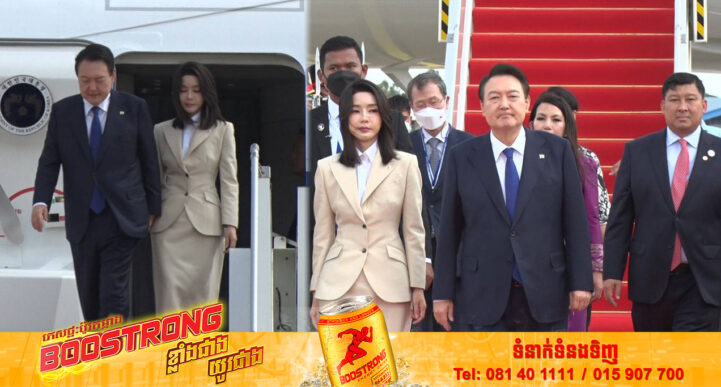 រាជធានីភ្នំពេញ៖ យោងតាមការចុះផ្សាយរបស់ ទូរទស្សន៍ជាតិកម្ពុជា ទទក នៅថ្ងៃទី១១ ខែវិច្ឆិកា ឆ្នាំ២០២២ បានឱ្យដឹងថា ឯកឧត្តម Yoon Suk- yeol ប្រធានាធិបតីកូរ៉េខាងត្បូង និង លោកជំទាវ Kim Kun-hee បានដឹកនាំគណៈប្រតិភូជាន់ខ្ពស់អញ្ជើញមកដល់ព្រះរាជាណាចក្រកម្ពុជា ប្រកបដោយសុវត្ថិភាព តាមជើងយន្តហោះពិសេសKG 001 នៅវេលាម៉ោង១២៖៤៧ នាទី នៅរសៀលថ្ងៃទី១១ ខែវិច្ឆិកា ឆ្នាំ២០២២។ ដោយមានការទទួលបដិសណ្ឋាកិច្ចស្វាគមន៍យ៉ាងកក់ក្តៅពីសំណាក់ ឯកឧត្តម សាយ សំអាល់ រដ្ឋមន្រ្តី ក្រសួងបរិស្ថាន និង ឯកឧត្តម