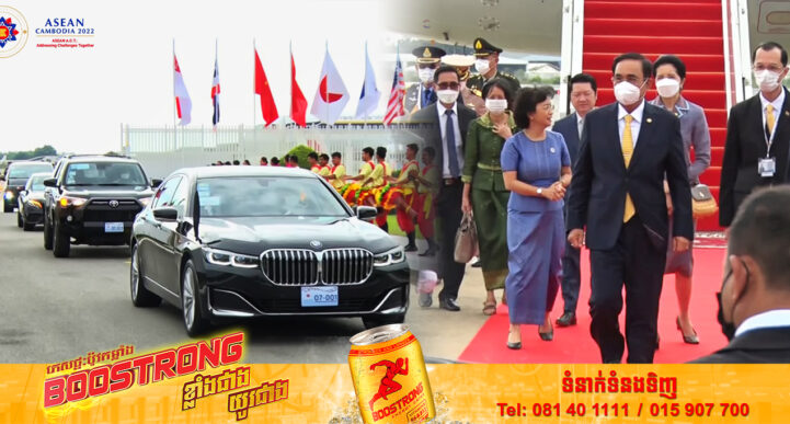 រាជធានីភ្នំពេញ៖ យោងតាមការចុះផ្សាយរបស់ ទូរទស្សន៍ជាតិកម្ពុជា ទទក – TVK នៅថ្ងៃទី១០ ខែវិច្ឆិកា ឆ្នាំ២០២២ បានឱ្យដឹងថា ឯកឧត្តម ប្រាយុទ្ធ ចាន់អូចា នាយករដ្ឋមន្រ្តីនៃព្រះរាជាណាចក្រថៃអមដោយកងកំលាំងយោធាបានដឹកនាំគណៈប្រតិភូជាន់ខ្ពស់មកដល់ព្រះរាជាណាចក្រកម្ពុជា នៅព្រឹកថ្ងៃទី ១០ ខែវិច្ឆិកា ឆ្នាំ២០២២ ប្រកប ដោយសុវត្ថិភាពតាមយន្តហោះពិសេសដោយមានការទទួលបដិសណ្ឋាកិច្ចស្វាគមន៌យ៉ាងកក់ក្តៅពីសំណាក់ លោកជំទាវវេជ្ជបណ្ឌិត អ៊ឹង កន្ថាផាវី រដ្ឋមន្ត្រីក្រសួងកិច្ចការនារី និង ឯកឧត្តម សុខ សូកេន រដ្ឋលេខាធិការក្រសួងការបរទេស និង សហប្រតិបត្តិការអន្តរជាតិដើម្បីចូលរួមកិច្ចប្រជុំកំពូលអាស៊ាន និង កិច្ចប្រជុំកំពូលពាក់ព័ន្ធ ដែលកម្ពុជាទទួលរៀបចំធ្វើជាម្ចាស់ផ្ទះ៕