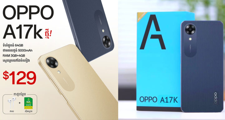 វ៉ាវឡូយម៉េស! មុននេះបន្តិច OPPO បានប្រកាសចេញលក់នូវស្មាតហ្វូន A Series ជំនាន់ថ្មី OPPO A17k តម្លៃត្រឹមតែ $129 ដែលបង្កើតឡើងជាមួយលក្ខណៈពិសេសដ៏អស្ចារ្យជាច្រើន និងជាស្មាតហ្វូនបង្កើនល្បឿនក្នុងជីវិតរស់នៅរបស់អ្នកឲ្យកាន់តែប្រសើរបង្កប់ទៅដោយបច្ចេកវិទ្យានៃភាពច្នៃប្រឌិតគ្មានដែនកំណត់។ ការពិត OPPO A Series ត្រូវបានគេស្គាល់ថាជាស្មាតហ្វូនពេញនិយមតាមទាន់សម័យកាល និងស្ថិតក្នុងកម្រិតថវិកា ហើយគ្រប់ម៉ូដែលនៃស៊េរី A គឺតែងតែទទួលបានការគាំទ្រពីសំណាក់អតិថិជនគ្រប់ទិសទី ដែលនេះជាកម្លាំងចិត្តជម្រុញឲ្យ OPPO តែងតែព្យាយាមស្វែងរកអ្វីថ្មីជានិច្ចត្រឡប់មកកាន់អតិថិជនជាមួយគុណភាពឈានមុខគេ តម្លៃពិសេសសមរម្យ រចនាបថស៊ីវិល័យ និងបច្ចេកវិទ្យាល្អដាច់គេនៅក្នុងទីផ្សារកម្ពុជា។ តោះ! ឥឡូវមកតាមដានទាំងអស់គ្នាថា OPPO A17k មានចំណុចល្អៗ និងខ្លាំងជាងគេកម្រិតណា?
