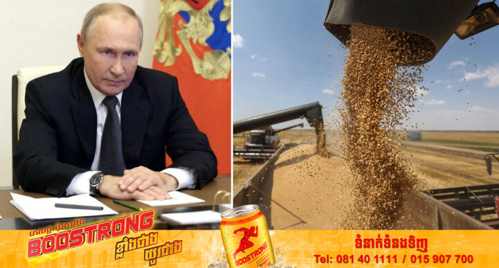 ប្រធានាធិបតីលោក វ្ល៉ាឌីមៀ ពូទីន បាននិយាយថា រុស្ស៊ីកំពុងផ្អាកប៉ុន្តែមិនបញ្ចប់ ការចូលរួមរបស់ខ្លួននៅក្នុងកិច្ចព្រមព្រៀងដែលអនុញ្ញាតឱ្យឆ្លងកាត់ដោយសុវត្ថិភាព ចំពោះកប៉ាល់ដែលដឹកជញ្ជូនគ្រាប់ធញ្ញជាតិរបស់អ៊ុយក្រែន។ ទីក្រុងម៉ូស្គូបានដកខ្លួនចេញពីកិច្ចព្រមព្រៀង ដែលសម្របសម្រួលដោយអង្គការសហប្រជាជាតិមួយនេះកាលពីថ្ងៃសៅរ៍ ដោយបានចោទប្រកាន់ថា អ៊ុយក្រែនបានប្រើប្រាស់ច្រករបៀងសុវត្ថិភាពនៅក្នុងសមុទ្រខ្មៅ ដើម្បីវាយប្រហារកងនាវារបស់ខ្លួន។ យ៉ាងណា UN និយាយថា យប់នោះគ្មានកប៉ាល់នៅច្រករបៀងនោះទេ ខណៈអ៊ុយក្រែនក៏មិនបានអះអាងទទួលខុសត្រូវចំពោះការវាយប្រហារនោះដូចគ្នា។ ក្រសួងហេដ្ឋារចនាសម្ព័ន្ធរបស់ប្រទេសអ៊ុយក្រែនបាននិយាយថា ទោះបីជាមានការដកខ្លួនចេញក៏ដោយ កប៉ាល់ចំនួន ១២ ដែលមានផ្ទុកអាហារ រួមទាំងគ្រាប់ធញ្ញជាតិចំនួន ៣៥៤,៥០០ តោន បានចាកចេញពីកំពង់ផែសមុទ្រខ្មៅរបស់ប្រទេសអ៊ុយក្រែនកាលពីថ្ងៃចន្ទ។ អ្នកនាំពាក្យរបស់រដ្ឋបាលយោធា Odesa ដកស្រង់ដោយ រ៉យទ័រ បាននិយាយថា នេះជាបរិមាណនៃការនាំចេញច្រើនបំផុត ចាប់តាំងពីកិច្ចព្រមព្រៀងគ្រាប់ធញ្ញជាតិបានចាប់ផ្តើម។ ក្រសួងហេដ្ឋារចនាសម្ព័ន្ធបានបន្ថែមថា កប៉ាល់មួយក្នុងចំណោមកប៉ាល់ដែលផ្ទុកគ្រាប់ធញ្ញជាតិ