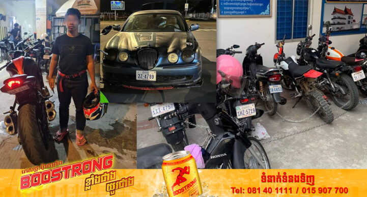 រាជធានីភ្នំពេញ៖ យោងតាមការចុះផ្សាយរបស់ ស្នងការដ្ឋាននគរបាលរាជធានីភ្នំពេញ នៅថ្ងៃទី០២ ខែតុលា ឆ្នាំ២០២២ បានឱ្យដឹងថា ដោយអនុវត្តតាមការណែនាំ និងបទបញ្ជាជាប្រចាំរបស់ឯកឧត្តម ឧត្តមសេនីយ៍ឯក ស ថេត អគ្គស្នងការរង និងជាស្នងការនគរបាលរាជធានីភ្នំពេញ នៅយប់ថ្ងៃទី៣១ ខែតុលា ឆ្នាំ២០២២ វេលាម៉ោង២០:៣០នាទី កម្លាំងប៉ុស្តិ៍នគរបាលរដ្ឋបាលច្រាំងចំរេះទី១ នៃអធិការដ្ឋាននគរបាលឫស្សីកែវ បានធ្វើការបង្រ្កាបនិងឃាត់ចាប់ម៉ូតូកែច្នៃបំពង់ស៊ីម៉ាំងប្រែនខុសបច្ចេកទេស (បំពង់ស្រីនិងកែ) បំពង់សំឡេង បង្កឲ្យមានការរំខានដល់អ្នកដទៃ និងធ្វើឲ្យបាត់បង់សណ្តាប់ធ្នាប់សាធារណៈ ម៉ូតូចំនួន០៩គ្រឿង និងរថយន្តមួយគ្រឿង ខណៈកម្លាំងធ្វើការល្បាតពួនស្ទាក់ក្នុងមូលដ្ឋាន។ ១- ម៉ូតូម៉ាកBiGB0Y (បិតបូយ) ពណ៌ខ្មៅ ពាក់ផ្លាកលេខភ្នំពេញ១II៤៧៥៧ បើកបរដោយឈ្មោះហ៊ន