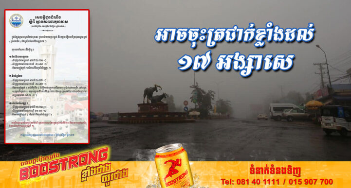 November 1, 2022 - ព័ត៌មានជាតិចាប់ពីថ្ងៃស្អែក ដល់ថ្ងៃទី០៨ ខែវិច្ឆិកា នៅតាមបណ្ដាខេត្តចំនួន៤នេះ អាចចុះត្រជាក់ខ្លាំងរហូតដល់១៧ អង្សាសេ