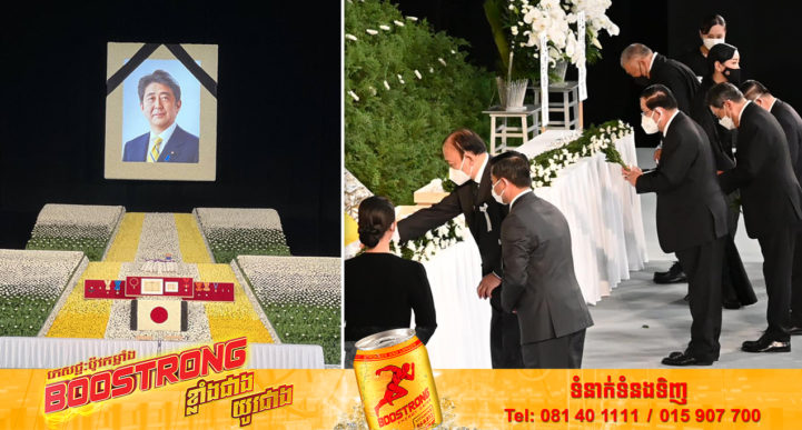យោងតាមគណនីហ្វេសប៊ុកផ្ទាល់របស់ សម្តេចតេជោ ហ៊ុន សែន នាយករដ្ឋមន្ត្រីនៃព្រះរាជាណាចក្រកម្ពុជា បានឱ្យដឹងថា នៅរសៀលថ្ងៃទី២៧ ខែកញ្ញា ឆ្នាំ២០២២ ពិធីបុណ្យសពថ្នាក់ជាតិជូនឯកឧត្តម អាបេ ស៊ីនហ្សូ អតីតនាយករដ្ឋមន្ត្រីជប៉ុន បានចាប់ផ្តើមរៀបចំឡើងនៅសាល Nippon Budokan តាមបែបបទប្រពៃណី និងសាសនាជប៉ុន និងត្រូវបានផ្តល់មហាកិត្តិយសជូនអំណោយពីប្រេសិតរបស់ព្រះចៅអធិរាជ និងព្រះរាជអគ្គមហេសី និងអតីតព្រះចៅអធិរាជ និងព្រះរាជអគ្គមហេសី រួមនឹងការថ្វាយកម្រងផ្កាពីសមាជិកព្រះរាជវង្សានុវង្សជប៉ុន រួមនឹងមានការចូលរួមពីថ្នាក់ដឹកនាំជាប្រមុខរដ្ឋ/រដ្ឋាភិបាល អតីតមេដឹកនាំពិភពលោក ប្រមាណ ៥០រូប និងភ្ញៀវកិត្តិយសអន្តរជាតិ ប្រមាណ ៧០០នាក់ និងភ្ញៀវជាតិ សរុបទាំងអស់ប្រមាណ ៤ ៥០០