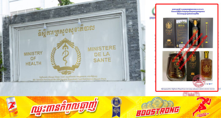 រាជធានីភ្នំពេញ៖ នៅថ្ងៃទី២៤ ខែកក្កដា ឆ្នាំ២០២៤ យោងតាមការចុះផ្សាយរបស់ ក្រសួងសុខាភិបាល បានចេញសេចក្តីជូនដំណឹង ស្តីពីការហាមឃាត់ការចែកចាយ លក់ ឬទទួលទានស្រាថ្នាំចំនួន ៣ ប្រភេទ ដោយមានផ្ទុកសារធាតុ SILDENAFIL(សារធាតុបង្កើនផ្លូវភេទបុរស) កម្រិតខ្ពស់ ដែលអាចធ្វើឱ្យប៉ះពាល់ធ្ងន់ធ្ងរដល់សុខភាពរបស់អ្នកទទួលទាន និងអាចបង្កគ្រោះថ្នាក់ដល់អាយុជីវិត។ យោងតាមការ វិភាគគុណភាពនៅមជ្ឈមណ្ឌលជាតិពិសោធន៍សុខាភិបាល នៃក្រសួងសុខាភិបាល បានបញ្ជាក់លទ្ធផលថា ស្រាថ្នាំឈ្មោះ Royal Health Wine EST:2005 ចំណុះ 500ml, Royal Health Wine EST:2005 ចំណុះ 100ml