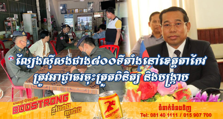 ខេត្តតាកែវ៖ យោងតាមរយៈកិច្ចសំភាសន៍រវាងសារព័ត៌មាន Freshnews ជាមួយនឹងលោក អ៊ូច ភា អភិបាលខេត្តតាកែវ បានឲ្យដឹងថា ក្នុងរយៈពេលថ្ងៃ៣ កម្លាំងសមត្ថកិច្ចនៅក្នុងខេត្តតាកែវ បានធ្វើការចុះត្រួតពិនិត្យ និងបង្ក្រាបទីតាំងល្បែងអនឡាញ និងល្បែងខុសច្បាប់នៅក្នុងខេត្តតាកែវ មានចំនួនរហូតដល់ ៨៦៩ទីតាំង។ គួរបញ្ជាក់ផងដែរថា កាលពីថ្ងៃទី១៧ ខែកញ្ញា ឆ្នាំ២០២២ សម្តេចតេជោ ហ៊ុន សែន នាយករដ្ឋមន្ត្រីនៃព្រះរាជាណាកច្រកម្ពុជា បានផ្ញើសារសំលេងពិសេសអំពាវនាវដល់អាជ្ញាធរថ្នាក់ក្រោមជាតិ សមត្ថកិច្ច និងប្រជាពលរដ្ឋ ពាក់ព័ន្ធនឹងវិធានការបង្ក្រាបល្បែងស៊ីសងខុសច្បាប់ទូទាំងប្រទេសកម្ពុជា ហើយប្រសិនបើអភិបាលខេត្ត-រាជជធានី ឬមន្ត្រីនគរបាលណា ដែលមិនបង្ក្រាប និងត្រូវដកចេញពីតំណែង។ សម្តេចតេជោ បានមានប្រសាសន៍ថា៖ “ខ្ញុំ