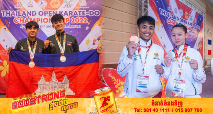 រាជធានីភ្នំពេញ៖ យោងតាមការចុះផ្សាយរបស់ ក្រសួងព័ត៌មាន នៅថ្ងៃទី០៥ ខែកញ្ញា ឆ្នាំ២០២២ បានឱ្យដឹងថា កីឡាករ កីឡាការិនីការ៉ាតេកម្ពុជា ដណ្តើមបានមេដាយសរុប៧ គ្រឿងពីការប្រកួតកីឡាការ៉ាតេជើងឯក (Thailand Open Karate-DO Championship 2022) ឆ្នាំ២០២២ កាលពីពេលថ្មីៗនេះ ដែលនេះគឺជាក្តីសង្ឃឹមកាន់តែខ្ពស់ ក្នុងដំណើរឆ្ពោះទៅទទួលរៀបចំធ្វើម្ចាស់ផ្ទះ ការប្រកួតកីឡា ស៊ីហ្គេម លើកទី៣២ ឆ្នាំ២០២៣ ជាប្រវត្តិសាស្ត្រដំបូងរបស់កម្ពុជា។ លោក ដែក ភារៈ អគ្គលេខាធិការរង សហព័ន្ធកីឡាការ៉ាតេកម្ពុជាបានគូសបញ្ជាក់ថា មេដាយចំនួន ៧គ្រឿង ដែលកីឡាការ៉ាតេកម្ពុជាដណ្តើមបាន ក្នុងព្រឹត្តិការណ៍អន្តរជាតិនៅប្រទេសថៃនេះ