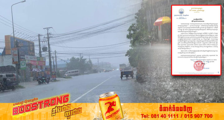 រាជធានីភ្នំពេញ៖ យោងតាមការចុះផ្សាយរបស់ ក្រសួងធនធានទឹក និងឧតុនិយម នៅថ្ងៃទី០៣ ខែកញ្ញា ឆ្នាំ២០២២ បានចេញសេចក្ដីជូនដំណឹងស្ដីពី ស្ថានភាពអាកាសធាតុ បានឱ្យដឹងថា៖ យោងតាមការសង្កេតតាមដានស្ថានភាពអាកាសធាតុ ដែលបានវិវត្តជាក់ស្តែងជាបន្តបន្ទាប់ បានបង្ហាញឲ្យឃើញថា៖ ប្រទេសកម្ពុជាបាននិងកំពុងទទួលរងនូវឥទ្ធិពលពីប្រព័ន្ធសម្ពាធទាប (ITCZ) អូសបន្លាយនៅលើភាគខាងជើង ប្រទេសថៃ ឡាវ និងវៀតណាម។ នៅថ្ងៃទី៥ ខែកញ្ញា ឆ្នាំ២០២២ ប្រព័ន្ធសម្ពាធទាបនឹងរំកិលចុះមកក្រោមអូសបន្លាយគ្របដណ្តប់មកលើប្រទេសកម្ពុជា។ លក្ខណៈបែបនេះនឹងធ្វើឲ្យប្រទេសកម្ពុជា ចាប់ពីថ្ងៃទី៥ ដល់ថ្ងៃទី៩ ខែកញ្ញា ឆ្នាំ២០២២ ស្ថានភាពអាកាសធាតុជាទូទៅនឹងអាចមានភ្លៀងធ្លាក់រាយប៉ាយលើផ្ទៃប្រទេស ជាមួយនឹងទឹកភ្លៀងដែលមានលក្ខណៈធ្លាក់ជាប់ជាបន្តក្នុងកម្រិតពីមធ្យមទៅបង្គួរ ក្នុងនោះក៏មានផ្នែកខ្លះមានភ្លៀងធ្លាក់ច្រើនដោយអន្លើ លាយឡំទៅដោយផ្គរ រន្ទះ និងខ្យល់កន្រ្តាក់