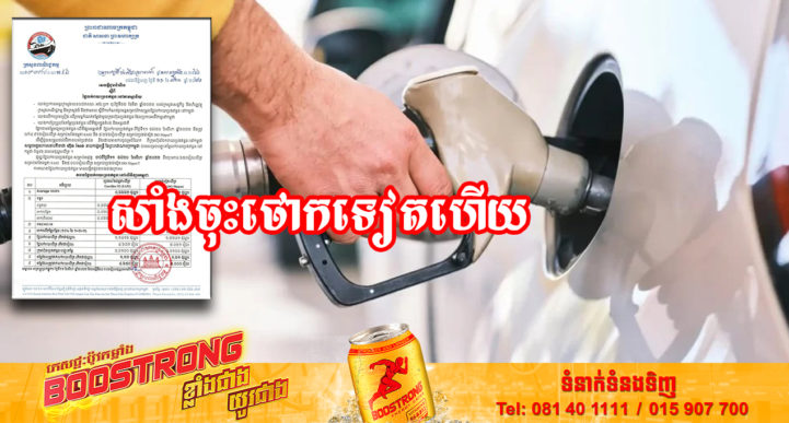 រាជធានីភ្នំពេញ៖ យោងតាមលិខិតរបស់ក្រសួងពាណិជ្ជកម្ម ចុះផ្សាយថ្ងៃទី១១ ខែសីហា ឆ្នាំ២០២២ ស្តីអំពីតម្លៃលក់រាយប្រេងឥន្ធនៈនៅតាមស្ថានីយទាំងអស់ក្នុងព្រះរាជាណាចក្រកម្ពុជាសម្រាប់អនុវត្តទៅតាមតម្លៃមធ្យមប្រេងឥន្ធនៈលើទីផ្សារអន្តរជាតិ ចាប់ពីថ្ងៃទី១១ ដល់ថ្ងៃទី២០ ខែសីហា ឆ្នាំ២០២២ បានឲ្យដឹងថា តម្លៃប្រេងសាំងធម្មតាមានតម្លៃ ៤,៦៥០រៀលក្នុងមួយលីត្រ ចំណែកឯប្រេងសាំងម៉ាស៊ូតមានតម្លៃ ៥,០០០រៀលក្នុងមួយលីត្រប៉ុណ្ណោះ។ ហើយតម្លៃនេះបើធៀបនឹងតម្លៃ ដែលក្រសួងបានកំណត់កាលពី១០ថ្ងៃមុន មានការចុះបន្តិចបន្តួច ដោយកាលពី១០ថ្ងៃមុន សម្រាប់ប្រេងសាំងធម្មតាគឺមានតម្លៃ ៤,៧៥០រៀល មានន័យថាចុះ ១០០រៀល និងតម្លៃប្រេងសាំងម៉ាស៊ូតមានតម្លៃ ៥,១៥០រៀលក្នុងមួយលីត្រ មានន័យថាចុះ ១៥០រៀលក្នុងមួយលីត្រ ៕ ប្រភព៖ ទូរទស្សន៍ជាតិកម្ពុជា ទទក – TVK