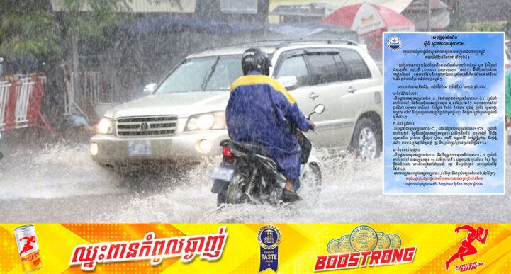 រាជធានីភ្នំពេញ៖ យោងតាមការចុះផ្សាយរបស់ ក្រសួងធនធានទឹក និងឧតុនិយម បានចេញសេចក្ដីជូនដំណឹង អំពីស្ថានភាពធាតុអាកាសនៅព្រះរាជាណាចក្រកម្ពុជាសម្រាប់ថ្ងៃទី១៧ ខែកក្កដា ឆ្នាំ២០២៤។ ក្រសួងធនធានទឹក បានឱ្យដឹងថា ប្រព័ន្ធសម្ពាធទាបមួយដែលកំពុងកើតមានឡើងនៅសមុទ្រចិនខាងត្បូង បាននិងវិវត្តទៅជាព្យុះត្រូពិក ឈ្មោះទ្រី (Tropical Depression THREE) នឹងរំកិលទៅកាន់ភាគកណ្តាលនៃអាងទន្លេមេគង្គដែលនឹងបណ្តាលឱ្យសម្ពាធទាបនិងរបបខ្យល់មូសុងនិរតីចាប់ផ្តើមបង្កើនឥទ្ធិពលកាន់តែខ្លាំងមកលើព្រះរាជាណាចក្រកម្ពុជា។ ស្ថានភាពបែបនេះនឹងធ្វើឱ្យចាប់ពីថ្ងៃទី ១៧ដល់ថ្ងៃទី១៩ ខែកក្កដា ឆ្នាំ២០២៤៖ ១-តំបន់វាលទំនាប៖ -សីតុណ្ហភាពមធ្យមអប្បបរមា២៣°C និងសីតុណ្ហភាពមធ្យមអតិបរមា៣២°C។ ខ្យល់បក់មកពីទិសនិរតី និងទិសបស្ចិមមានល្បឿនមធ្យម ៧,៥០ម៉ែត្រ/វិនាទី។ ខេត្តបន្ទាយមានជ័យ បាត់ដំបង សៀមរាប ពោធិ៍សាត់ កំពង់ឆ្នាំង កំពង់ធំ កំពង់ចាម