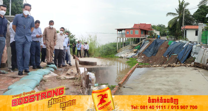 រាជធានីភ្នំពេញ៖ យោងតាមការចុះផ្សាយរបស់ ក្រសួងព័ត៌មាន នៅថ្ងៃទី២៦ ខែកក្កដា ឆ្នាំ២០២២ បានឲ្យដឹងថា ឯកឧត្ដម ឃួង ស្រេង អភិបាល នៃគណៈអភិបាលរាជធានីភ្នំពេញ ដឹកនាំមន្រ្តីរដ្ឋបាលរាជធានីភ្នំពេញ និងមន្ទីរអង្គភាពជំនាញពាក់ព័ន្ធ ចុះត្រួតពិនិត្យទីតាំងបាក់ច្រាំងទន្លេសាបដែលប៉ះពាល់លំនៅដ្ឋាន និងផ្លូវបេតុង ស្ថិតនៅភូមិព្រែកតាគង់ សង្កាត់ព្រែកតាសេក ខណ្ឌជ្រោយចង្វារ រាជធានីភ្នំពេញ នាព្រឹកថ្ងៃទី២៦ ខែកក្កដា ឆ្នាំ២០២២។ លោក អឿ ស៊ីផុន ចៅសង្កាត់ព្រែកតាសេក បានឲ្យដឹងថា ច្រាំងទន្លេដែលបាក់ចូលទៅក្នុងទន្លេ នៅចំណុចភូមិព្រែកតាគង់ សង្កាត់ព្រែកនេះ បានបាក់ចំនួន៣ដង ជាបន្តបន្ទាប់គ្នា ប្រមាណជិត៥ខែមកហើយ