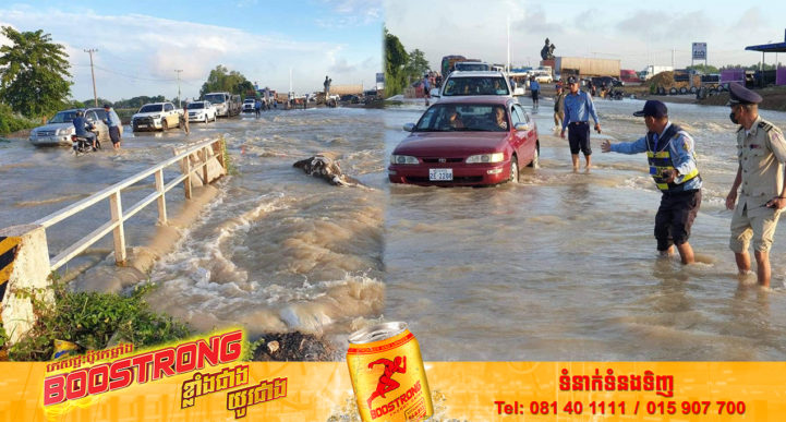 ខេត្តកំពង់ឆ្នាំង៖ យោងតាមការបញ្ជាក់ព័ត៌មានបឋម នៅលើគណនីហ្វេសប៊ុករបស់លោក San Prum បានឲ្យដឹងថា នៅព្រឹកម៉ោង៧ និង០០នាទីទៅថ្ងៃទី ២២ ខែកក្កដា ឆ្នាំ២០២២ ក្នុងខណៈពេលនេះជំនន់ទឹកភ្លៀងកំពុងហូរកាត់លិចកំណាត់ផ្លូវជាតិលេខ៥ ស្ថិតត្រង់ចំណុចចន្លោះគីឡូម៉ែត្រ ៤០-៤១ នៅស្ពានក្រាំងពន្លៃ ខេត្តកំពង់ឆ្នាំង។ សូមប្រជាពលរដ្ឋយើងធ្វើដំណើរតាមផ្លូវជាតិលេខ ៥ នេះលើកំណាត់ផ្លូវចំនុចនេះមេត្តាមានការប្រុងប្រយ័ត្នខ្ពស់ផង៕ ប្រភព៖ ហ្វេសប៊ុក លោក San Prum