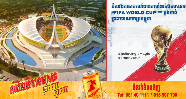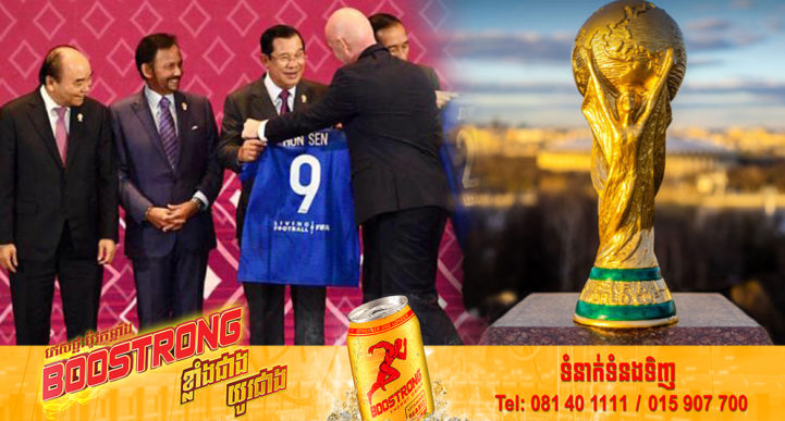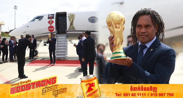 រាជធានីភ្នំពេញ៖ នៅព្រឹកស្អែកថ្ងៃទី១៥ ខែមិថុនា ឆ្នាំ២០២២នេះ ពានបាល់ទាត់ពិភពលោក (FIFA WORLD CUP) នឹងមកដល់ប្រទេសកម្ពុជាជាលើកដំបូងហើយ។ សម្តេចតេជោ ហ៊ុន សែន នាយករដ្ឋមន្ត្រីកម្ពុជា នឹងអញ្ជើញទទួលពានបាល់ទាត់ពិភពលោកនេះដោយផ្ទាល់នៅវិមានសន្តិភាព។ គណៈកម្មាធិការជាតិអូឡាំពិកកម្ពុជា បានឱ្យដឹងថា ពានបាល់ទាត់ពិភពលោកធ្វើពីមាសសុទ្ធទម្ងន់ជាង ៦គីឡូក្រាម នឹងដឹកតាមជើងហោះហើរឯកជនពិសេស (Private Jet)។ ការមកដល់ពានរង្វាន់បាល់ទាត់ពិភពលោក ដែលមានតម្លៃប្រមាណ ២០លានដុល្លារនេះ ធ្វើឡើងក្រោមកម្មវិធីដំណើរគោចរពានរង្វាន់បាល់ទាត់ពិភពលោក ដើម្បីអបអរសាទរការប្រកួតកីឡាបាល់ទាត់ដណ្ដើមពានរង្វាន់ពិភពលោក នាខែធ្នូ ឆ្នាំ២០២២ នៅទីក្រុងដូហា ប្រទេសកាតា។ គណៈកម្មាធិការជាតិអូឡាំពិកកម្ពុជា បានបញ្ជាក់ថា ការមកដល់នៃពានរង្វាន់បាល់ទាត់ពិភពលោកនាថ្ងៃស្អែកនេះ គឺជាការបង្ហាញវត្តមានលើកដំបូងនៅលើទឹកដីកម្ពុជា