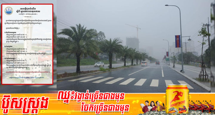 រាជធានីភ្នំពេញ៖ យោងតាមការចុះផ្សាយរបស់ ក្រសួងធនធានទឹក និងឧតុនិយម នៅថ្ងៃទី៣១ ខែឧសភា ឆ្នាំ២០២២ ស្ដីពីស្ថានភាពធាតុអាកាស ចាប់ពីថ្ងៃទី០១ ដល់ថ្ងៃទី០៧ ខែមិថុនា ឆ្នាំ២០២២ បានឲ្យដឹងថា ព្រះរាជាណាចក្រកម្ពុជា ទទួលរងឥទ្ធិពលពីជ្រលងនៃសម្ពាធទាប ដែលស្ថិតនៅភាគខាងលើ ប្រទេសឡាវ និងប្រទេសវៀតណាមជាមួយនិងខ្យល់មូសុងនិរតី កម្រិតពីខ្សោយទៅមធ្យម។ ស្ថានភាពបែបនេះនឹងធ្វើឲ្យ៖ ១.តំបន់ទំនាបកណ្តាល៖ -សីតុណ្ហភាពអប្បបរមា មានពី ២៤-២៦ °C -សីតុណ្ហភាពអតិបរមា មានពី ៣៣-៣៥ °C -បណ្តារាជធានីខេត្តនានា នឹងអាចមានភ្លៀងធ្លាក់រាយប៉ាយ ក្នុងកម្រិតពីតិចទៅបង្គួរ លាយឡំទៅដោយផ្គរ រន្ទះ