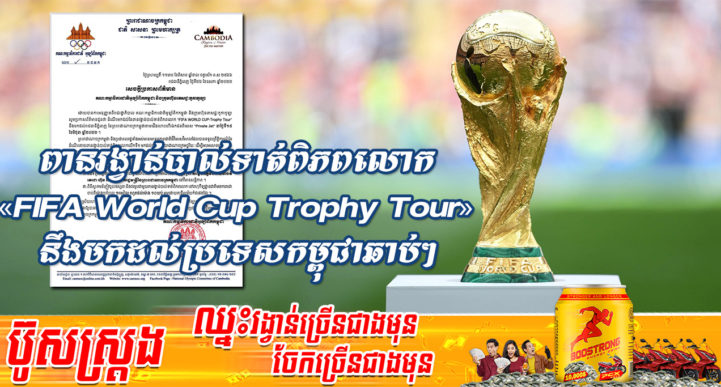 គណៈកម្មាធិការជាតិអូឡាំពិកកម្ពុជា (NOCC) បានប្រកាសអំពីការដង្ហែពានរង្វាន់បាល់ទាត់ពិភពលោក FIFA World Cup Trophy Tour មកកាន់ប្រទេសកម្ពុជាជាផ្លូវការហើយ ក្រោយទទួលបានការអនុញ្ញាតពីរាជរដ្ឋាភិបាល។ យោងតាមសេចក្ដីប្រកាសព័ត៌មាន របស់គណៈកម្មាធិការជាតិអូឡាំពិកកម្ពុជានៅព្រឹកថ្ងៃទី២៧ ខែឧសភានេះបានបញ្ជាក់ថា ពានរង្វាន់បាល់ទាត់ពិភពលោក “FIFA World Cup Trophy Tour” នឹងមកដល់រាជធានីភ្នំពេញ នៃព្រះរាជាណាចក្រកម្ពុជាតាមជើងហោះហើរឯកជនពិសេស “Private jet” នាថ្ងៃទី១៥ ខែមិថុនា ឆ្នាំ២០២២ ខាងមុខ។ តាមរយៈនេះ ក្នុងនាមប្រជាពលរដ្ឋកម្ពុជាទាំងអស់ គណៈកម្មាធិការជាតិអូឡាំពិកកម្ពុជាបានចាត់ទុកនេះ គឺជាមោទនភាពជាតិដ៏វិសេសវិសាល ដែលកម្ពុជាបានទទួលព្រឹត្តិការណ៍នៃដំណើរគោចរពានរង្វាន់បាល់ទាត់ពិភពលោកលើកទី១ មកដល់កម្ពុជា ដើម្បីអបអរសាទរការប្រកួតបាល់ទាត់ដណ្ដើមពានរង្វាន់ពិភពលោកនាខែធ្នូ ឆ្នាំ២០២២