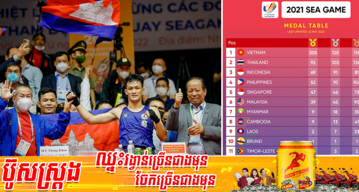 យោងតាមការចុះផ្សាយពីគណនីហ្វេសប៊ុកផ្ទាល់របស់ ឯកឧត្តម ប្រាក់ សុខុន ឧបនាយករដ្ឋមន្ត្រី រដ្ឋមន្ត្រីក្រសួងការបរទេស និងសហប្រតិបត្តិការអន្តរជាតិ នៅថ្ងៃទី២៤ ខែឧសភា ឆ្នាំ២០២២ បានឲ្យដឹងថា ខ្ញុំសូមចូលរួមអបអរសាទរដល់អត្តពលិកទាំងអស់ ជាពិសេសអត្តពលិកកម្ពុជា ដែលបានចូលរួមប្រកួតកីឡាអាស៊ីអាគ្នេយ៍ (ស៊ីហ្គេម) លើកទី៣១ ក្នុងឆ្នាំនេះ នៅប្រទេសវៀតណាម។ កម្ពុជាបានទទួលមេដាយសរុបចំនួន៦៣៖ មាស៩ ប្រាក់១៣ និង សំរឹទ្ធ៤១។ ស្របពេលដែលកម្ពុជាបានបំបែកកំណត់ត្រាថ្មីៗទាំងនេះប្រកបដោយមោទនភាព យើងនឹងបន្តបង្កើនទំនុកចិត្តក្នុងការធ្វើជាម្ចាស់ផ្ទះស៊ីហ្គេម និងអាស៊ានប៉ារ៉ាហ្គេមនៅឆ្នាំក្រោយ ៕ ប្រភព៖ ប្រាក់ សុខុន – Prak Sokhonn