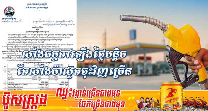 រាជធានីភ្នំពេញ៖ យោងតាមលិខិតរបស់ក្រសួងពាណិជ្ជកម្ម ចុះផ្សាយថ្ងៃទី២៣ ខែឧសភា ឆ្នាំ២០២២ ស្តីអំពីតម្លៃលក់រាយប្រេងឥន្ធនៈនៅតាមស្ថានីយទាំងអស់ក្នុងព្រះរាជាណាចក្រកម្ពុជាសម្រាប់អនុវត្តទៅតាមតម្លៃមធ្យមប្រេងឥន្ធនៈលើទីផ្សារអន្តរជាតិ ចាប់ពីថ្ងៃទី២១ ដល់ថ្ងៃទី៣១ ខែឧសភា ឆ្នាំ២០២២ បានឲ្យដឹងថា តម្លៃប្រេងសាំងធម្មតាមានតម្លៃ ៥,៦០០រៀលក្នុងមួយលីត្រ ចំណែកឯប្រេងសាំងម៉ាស៊ូតមានតម្លៃ ៥,៤០០រៀលក្នុងមួយលីត្រប៉ុណ្ណោះ។ ហើយតម្លៃនេះបើធៀបនឹងតម្លៃ ដែលក្រសួងបានកំណត់កាលពី១០ថ្ងៃមុន មានការឡើងបន្តិចបន្តួច ដោយកាលពី១០ថ្ងៃមុន សម្រាប់ប្រេងសាំងធម្មតាគឺមានតម្លៃ ៥,៥៥០រៀល មានន័យថាឡើង ៥០រៀលក្នុងមួយលីត្រ និងតម្លៃប្រេងសាំងម៉ាស៊ូតមានតម្លៃ ៥,៨០០រៀលក្នុងមួយលីត្រ មានន័យថាចុះ ៤០០រៀលក្នុងមួយលីត្រ ៕