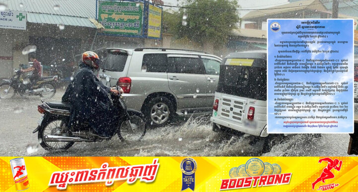 រាជធានីភ្នំពេញ៖ យោងតាមការចុះផ្សាយរបស់ ក្រសួងធនធានទឹក និងឧតុនិយម បានចេញសេចក្ដីជូនដំណឹង អំពីស្ថានភាពធាតុអាកាសនៅព្រះរាជាណាចក្រកម្ពុជាសម្រាប់ថ្ងៃទី៨ ខែកក្កដា ឆ្នាំ២០២៤។ ក្រសួងធនធានទឹក បានឱ្យដឹងថា សម្ពាធទាបគ្របដណ្ដប់មកលើឈូងសមុទ្រថៃ ព្រះរាជាណាចក្រកម្ពុជា ភាគកណ្តាលនៃអាងទន្លេមេគង្គ និងសមុទ្រចិនខាងត្បូង។ ស្ថានភាពបែបនេះនឹងធ្វើឱ្យចាប់ពីថ្ងៃទី៨ ដល់ថ្ងៃទី១០ ខែកក្កដា ឆ្នាំ២០២៤៖ ១-តំបន់វាលទំនាប៖ – សីតុណ្ហភាពមធ្យមអប្បបរមា២៣°C និងសីតុណ្ហភាពមធ្យមអតិបរមា៣២°C។ ខ្យល់បក់ មកពីទិសនិរតី និងទិសបស្ចឹម មានល្បឿនមធ្យម ២,៥០ម៉ែត្រ/វិនាទី។ ខេត្តបន្ទាយមានជ័យ បាត់ដំបង សៀមរាប ពោធិ៍សាត់ កំពង់ឆ្នាំង កំពង់ធំ កំពង់ចាម