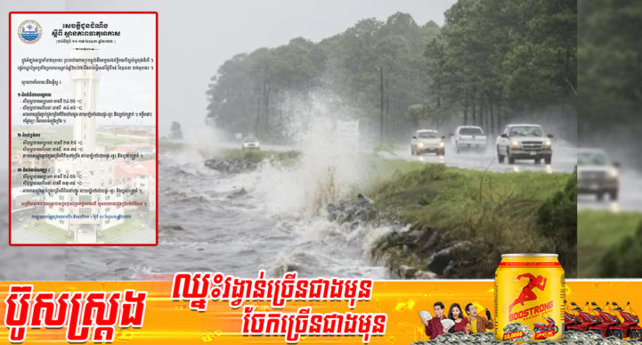 រាជធានីភ្នំពេញ៖ យោងតាមការចុះផ្សាយរបស់ ក្រសួងធនធានទឹក និងឧតុនិយម នៅថ្ងៃទី១០ ខែឧសភា ឆ្នាំ២០២២ បានចេញសេចក្ដីជូនដំណឹងស្ដីពី ស្ថានភាពធាតុអាកាស ចាប់ពីថ្ងៃទី១១ ដល់ថ្ងៃទី១៧ ខែឧសភា ឆ្នាំ២០២២ បានឲ្យដឹងថា ក្នុងអំឡុងសប្តាហ៍ខាងមុខនេះ ព្រះរាជាណាចក្រកម្ពុជា នឹងទទួលរងឥទ្ធិពលពីខ្យល់មូសុងនិរតី។ រដូវវស្សាជារួមទូទាំងប្រទេស សម្រាប់ឆ្នាំ២០២២ នឹងចាប់ផ្តើមនៅថ្ងៃទី១៥ ខែឧសភា ខាងមុខនេះ។ ស្ថានភាពបែបនេះនឹងធ្វើឲ្យ៖ ១.តំបន់ទំនាបកណ្តាល៖ -សីតុណ្ហភាពអប្បបរមា មានពី ២៤-២៦ °C -សីតុណ្ហភាពអតិបរមា មានពី ៣៤-៣៦ °C -អាចមានភ្លៀងធ្លាក់ក្នុងកម្រិតពីតិចទៅមធ្យម លាយឡំទៅដោយផ្គរ