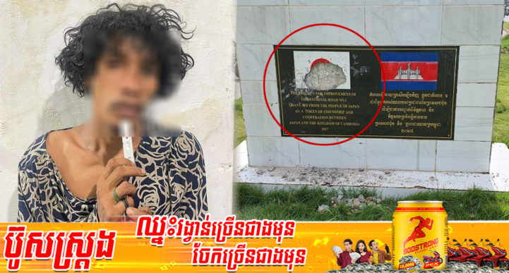 រាជធានីភ្នំពេញ៖ យោងតាមការចុះផ្សាយរបស់ អធិការដ្ឋាននគរបាលខណ្ឌច្បារអំពៅ នៅថ្ងៃទី១០ ខែឧសភា ឆ្នាំ២០២២ ស្តីពីករណី ធ្វើឲ្យខូចខាតដោយចេតនា ទ្រព្យសម្បត្តិសាធារណៈ (ប្រើកាំបិត ប៉័ងតោកាប់ផ្លាកមិត្តភាពជប៉ុន-កម្ពុជា) នៅចំណុចគល់ស្ពានព្រះមុន្នី វង្សចាស់ ផ្លូវជាតិលេខ១ ភូមិព្រែក សង្កាត់ច្បារអំពៅ១ ខណ្ឌច្បារអំពៅ កាលពីថ្ងៃទី០៨ ខែឧសភា ឆ្នាំ២០២២ ម៉ោង២៣ និង០០នាទី។ ដើមបណ្តឹងឈ្មោះគង់ សុផល ភេទ ប្រុស អាយុ៦៥ឆ្នាំ ជនជាតិខ្មែរ មុខរបរ ប្រជាការពារ ស្នាក់នៅផ្ទះលេខ២៧ ភូមិព្រែក សង្កាត់ ច្បារអំពៅ១