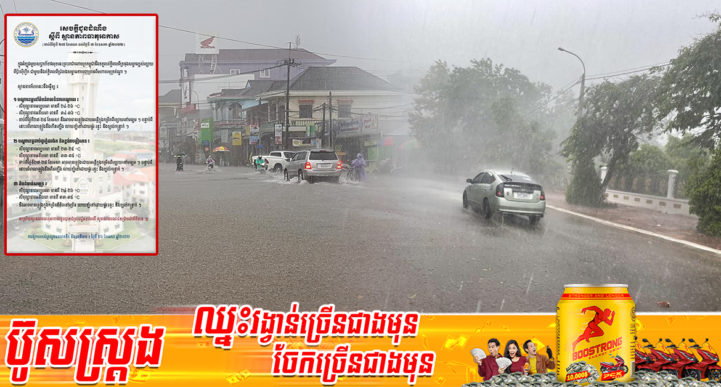 រាជធានីភ្នំពេញ៖ យោងតាមការចុះផ្សាយរបស់ ក្រសួងធនធានទឹក និងឧតុនិយម នៅថ្ងៃទី២៦ ខែមេសា ឆ្នាំ២០២២ បានចេញសេចក្ដីជូនដំណឹងស្ដីពី ស្ថានភាពធាតុអាកាសចាប់ពីថ្ងៃទី២៧ ខែមេសា ដល់ថ្ងៃទី០៣ ខែឧសភា ឆ្នាំ២០២២ បានឲ្យជ្រាបថា៖ ក្នុងអំឡុងមួយសប្តាហ៍ខាងមុខនេះ ព្រះរាជាណាចក្រកម្ពុជានឹងទទួលឥទ្ធិពលពីទ្រនុងសម្ពាធខ្ពស់ខ្សោយពីប៉ាស៊ីហ្វិក ជាមួយឥទ្ធិពលពីជ្រលងសម្ពាធទាបរុញច្រានពីមហាសមុទ្រឥណ្ឌា។ ស្ថានភាពបែបនេះនឹងធ្វើឲ្យ ១.បណ្តាខេត្តនៅតំបន់វាលទំនាបកណ្តាល៖ -សីតុណ្ហភាពអប្បបរមា មានពី ២៤-២៦ °C -សីតុណ្ណភាពអតិបរមា មានពី ៣៤-៣៦ °C -ចាប់ពីថ្ងៃទី២៧-២៨ ខែមេសា នឹងអាចមានភ្លៀងដោយអន្លើនៅក្នុងកម្រិតពីខ្សោយទៅមធ្យម ។ បន្ទាប់ពីនោះបរិមាណភ្លៀងនឹងកើនឡើង លាយឡំទៅដោយផ្គរ រន្ទះ