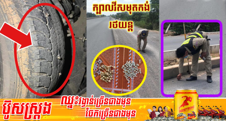ខេត្តបាត់ដំបង៖ យោងតាមការចុះផ្សាយរបស់ ស្នងការដ្ឋាននគរបាលខេត្តបាត់ដំបង នៅថ្ងៃទី២០ ខែមេសា ឆ្នាំ២០២២ បានឲ្យដឹងថា ក្រុមការងារព័ត៌មាននិងប្រតិកម្មរហ័សនៃស្នងការដ្ឋាននគរបាលខេត្តបាត់ដំបង មានកិត្តិយស សូមជម្រាបជូនសាធារណជន អ្នកសារព័ត៌មាន អ្នកនិយមប្រើប្រាស់បណ្តាញទំនាក់ទំនងសង្គម ក៏ដូចជាម្ចាស់គណនីហ្វេសប៊ុកឈ្មោះ Loeurn To បានជ្រាបថា៖ នៅព្រឹកថ្ងៃទី២០ ខែមេសា ឆ្នាំ២០២២ នេះបន្ទាប់ពីមានឃើញនូវការផ្សព្វផ្សាយក្នុងគណនីហ្វេសប៊ុកឈ្មោះ Loeum To ថាមានជនមិនស្គាល់មុខបានយកក្បាលវីសដែកដាក់ពង្រាយនៅតាមដងផ្លូវជាតិចំណុចចន្លោះភូមិព្រៃតូច និងភូមិកូនខ្លុង ក្នុងឃុំព្រៃតូច ស្រុកមោងឫស្សី ខេត្តបាត់ដំបង ដែលជាហេតុនាំបង្កឱ្យមុតកង់រថយន្តរបស់គាត់ជាច្រើនកន្លែងក្នុងខណៈដែលគាត់ធ្វើដំណើរឆ្លងកាត់ចំណុចនោះនាវេលាម៉ោង ១០និង២០នាទីយប់ថ្ងៃទី១៩ ខែមេសា ឆ្នាំ២០២២។ ទទួលបានព័ត៌មាននេះ លោកឧត្តមសេនីយ៍ទោ សាត