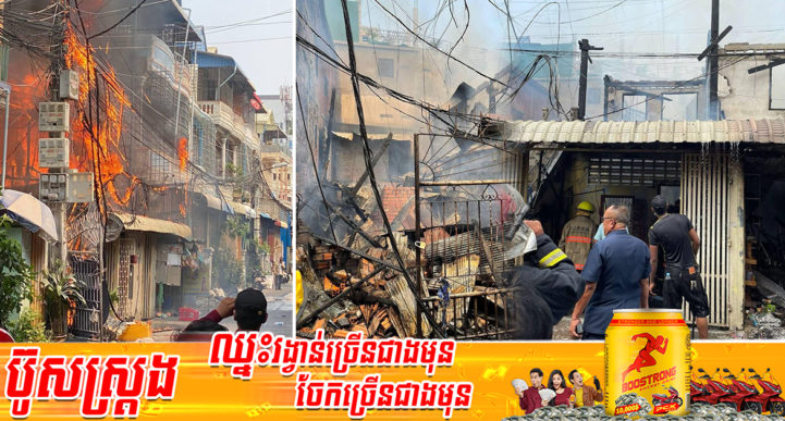 April 13, 2022 - ព័ត៌មានជាតិឆ្លងចរន្តអគ្គិសនី បង្កជាអគ្គិភ័យឆាបឆេះផ្ទះប្រជាពលរដ្ឋ ៦ខ្នងអស់ទាំងស្រុង នៅសង្កាត់បឹងសាឡាង ខណ្ឌទួលគោក