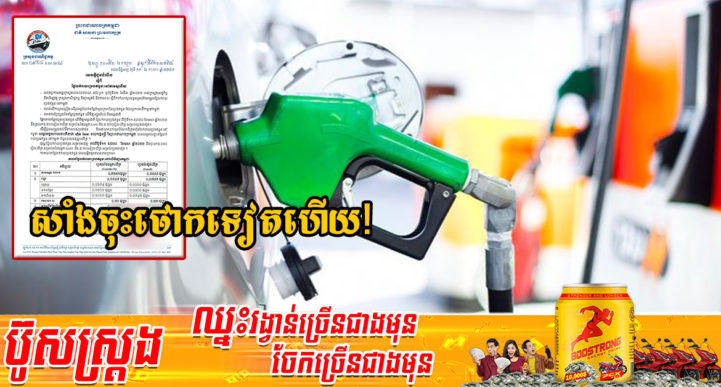 រាជធានីភ្នំពេញ៖ យោងតាមលិខិតរបស់ក្រសួងពាណិជ្ជកម្ម ចុះផ្សាយថ្ងៃទី១១ ខែមេសា ឆ្នាំ២០២២ ស្តីអំពីតម្លៃលក់រាយប្រេងឥន្ធនៈនៅតាមស្ថានីយទាំងអស់ក្នុងព្រះរាជាណាចក្រកម្ពុជាសម្រាប់អនុវត្តទៅតាមតម្លៃមធ្យមប្រេងឥន្ធនៈលើទីផ្សារអន្តរជាតិ ចាប់ពីថ្ងៃទី១១ ដល់ថ្ងៃទី២០ ខែមេសា ឆ្នាំ២០២២ បានឲ្យដឹងថា តម្លៃប្រេងសាំងធម្មតាមានតម្លៃ ៥,០៥០រៀលក្នុងមួយលីត្រ ចំណែកឯប្រេងសាំងម៉ាស៊ូតមានតម្លៃ ៥,១០០រៀលក្នុងមួយលីត្រប៉ុណ្ណោះ។ ហើយតម្លៃនេះបើធៀបនឹងតម្លៃ ដែលក្រសួងបានកំណត់កាលពី១០ថ្ងៃមុន មានការចុះបន្តិចបន្តួច ដោយកាលពី១០ថ្ងៃមុន សម្រាប់ប្រេងសាំងធម្មតាគឺមានតម្លៃ ៥,២៥០រៀល មានន័យថាចុះ ២០០រៀលក្នុងមួយលីត្រ និងតម្លៃប្រេងសាំងម៉ាស៊ូតមានតម្លៃ ៥,៣០០រៀលក្នុងមួយលីត្រ មានន័យថាចុះ ២០០រៀលក្នុងមួយលីត្រ ៕