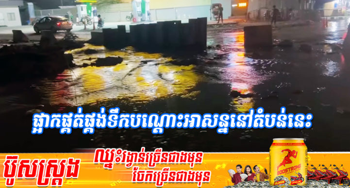 រដ្ឋាករទឹកស្វយ័តក្រុងភ្នំពេញ សូមគោរពជម្រាបជូន សម្តេច ទ្រង់ ឯកឧត្តម ឧកញ៉ា លោកជំទាវ លោក-លោកស្រី មេត្តាជ្រាបថា នៅវេលាម៉ោង ១៩:០០នាទីយប់ នាថ្ងៃទី១០ ខែមេសា ឆ្នាំ២០២២នេះ ការដ្ឋានសាងសង់ផ្លូវអាកាសក្រវ៉ាត់ក្រុងទី៣ នៅលើផ្លូវ១២០K កែងនឹងផ្លូវជាតិលេខ៤ បានបុកដែកការពាររណ្តៅប៉ះធ្លាយបំពង់មេនាំទឹកស្អាតទំហំ ៨០០មម ដែលនាំឱ្យមានការលេចធ្លាយទឹកយ៉ាងខ្លាំង។ បច្ចុប្បន្ន ក្រុមការងារជំនាញបាននឹងកំពុងធ្វើការចុះពិនិត្យ និងជួសជុលបន្ទាន់ ដោយត្រូវបិទវ៉ានផ្អាកផ្គត់ផ្គង់ទឹកបណ្តោះអាសន្នចាប់ពីចំណុចហ្គារ៉ាស់សាំងតូតាល់ផ្លូវវេងស្រេង រហូតដល់តំបន់កំបូល។ សេចក្តីដូចបានគោរពជម្រាបជូនខាងលើ សូម សម្តេច ទ្រង់ ឯកឧត្តម ឧកញ៉ា លោកជំទាវ លោក-លោកស្រី