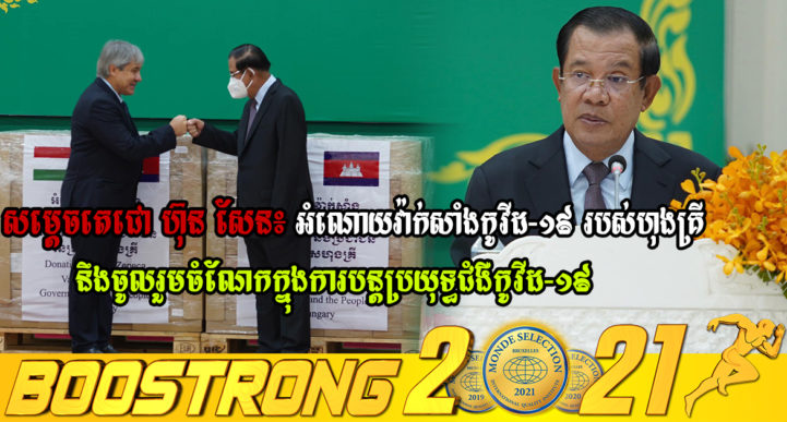 រាជធានីភ្នំពេញ៖ យោងតាមការចុះផ្សាយរបស់ ក្រសួងព័ត៌មាន នៅថ្ងៃទី១៨ ខែមីនា ឆ្នាំ២០២២ បានឲ្យដឹងថា ប្រមុខរាជរដ្ឋាភិបាលកម្ពុជា សម្ដេចអគ្គមហាសេនាបតីតេជោ ហ៊ុន សែន បានថ្លែងថា អំណោយសប្បុរសធម៌ដ៏ថ្លៃថ្លា វ៉ាក់សាំងកូវីដ-១៩ ប្រភេទ AstraZeneca ពីសំណាក់ប្រជាជន និងរដ្ឋាភិបាលហុងគ្រី នឹងចូលរួមចំណែកយ៉ាងសំខាន់ក្នុងការបន្តប្រយុទ្ធនឹង ជំងឺកូវីដ-១៩ នៅកម្ពុជា។ ក្នុងពិធីប្រគល់-ទទួលអំណោយដ៏ថ្លៃថ្លា វ៉ាក់សាំងកូវីដ-១៩(AstraZeneca) ចំនួន ៥២៣ ០០០ (ប្រាំសែន ពីរម៉ឺនបីពាន់) ដូស ពីរដ្ឋាភិបាល និងប្រជាជននៃប្រទេសហុងគ្រី ជូនរាជរដ្ឋាភិបាល និងប្រជាជននៃព្រះរាជាណាចក្រកម្ពុជា ដើម្បីទប់ស្កាត់ការរាលដាលនៃជំងឺកូវីដ-១៩