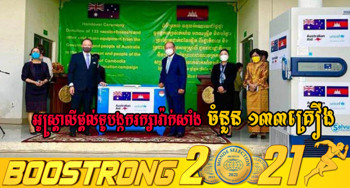 រាចធានីភ្នំពេញ៖ យោងតាមការចុះផ្សាយរបស់ ក្រសួងព័ត៌មាន បានឲ្យដឹងថា ឯកឧត្តមសាស្រ្តាចារ្យ ម៉ម ប៊ុនហេង រដ្ឋមន្រ្តីក្រសួងសុខាភិបាល និងឯកឧត្តម ប៉ាប្លូ កង់ (Pablo Kang) ឯកអគ្គរាជទូតអូស្រ្តាលី ប្រចាំកម្ពុជា អញ្ជើញជាអធិបតីក្នុងពិធីប្រគល់-ទទួលទូបង្កករក្សាវ៉ាក់សាំង ចំនួន១៣៣គ្រឿង និងបរិក្ខាប្រព័ន្ធត្រជាក់ដទៃទៀតពីរដ្ឋាភិបាល និងប្រជាជនអូស្រ្តាលី ជូនដល់រាជរដ្ឋាភិបាល និងប្រជាជនកម្ពុជា សម្រាប់យុទ្ធនាការចាក់វ៉ាក់សាំងបង្ការជំងឺកូវីដ-១៩ នាថ្ងៃទី២៨ ខែកុម្ភៈ ឆ្នាំ២០២២ នៅរាជធានីភ្នំពេញ ៕ ប្រភព៖ ក្រសួងព័ត៌មាន