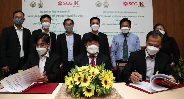 ក្រុមហ៊ុន អេសស៊ីជី ប្រចាំកម្ពុជា តាមរយៈបុត្រសម្ព័ន្ធរបស់ខ្លួន គឺក្រុមហ៊ុន កំពត ស៊ីមេន កាលពីថ្ងៃទី១១ ខែកុម្ភៈ ឆ្នាំ២០២២ បានចុះហត្ថលេខាលើអនុស្សរណៈយោគយល់គ្នា ជាមួយនឹងសាកលវិទ្យាល័យភូមិន្ទកសិកម្ម (RUA) សម្រាប់ការសិក្សាទិន្នន័យមូលដ្ឋានជីវចម្រុះនៅតំបន់ការដ្ឋានយកថ្មកំបោររបស់រោងចក្រក្រុមហ៊ុន កំពត ស៊ីមេន ដើម្បីត្រួសត្រាយផ្លូវសម្រាប់ការស្ដារបរិស្ថាននិងអភិរក្សជីវចម្រុះនៅតំបន់ទាំងនោះ នាពេលអនាគត ។ នៅក្រោមកិច្ចព្រមព្រៀងនេះ មជ្ឈមណ្ឌលសិក្សាកសិកម្មនិងបរិស្ថាន (CAES) របស់សាកលវិទ្យាល័យភូមិន្ទកសិកម្ម នឹងអនុវត្តការសិក្សាទិន្នន័យមូលដ្ឋានជីវចម្រុះ នៅទីតាំងគម្រោងយកថ្មកំបោរដែលគ្រប់គ្រងដោយរោងចក្រស៊ីម៉ងត៍ កំពត ស៊ីមេន នៅក្នុងខេត្តកំពត ដើម្បីប្រមូលទិន្នន័យមូលដ្ឋានសម្រាប់បម្រើដល់ការអនុវត្តការងារស្ដារបរិស្ថាននិងអភិរក្សជីវចម្រុះនៅតាមតំបន់គម្រោងទាំងនេះ នៅពេលខាងមុខ ។ នៅឯពិធីចុះហត្ថលេខា លោកបណ្ឌិត រ៉ាត់ឆាយុត