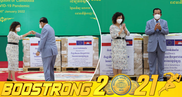 រាជធានីភ្នំពេញ៖ យោងតាមការគណនីហ្វេស ប៊ុករបស់ សម្តេចតេជោ ហ៊ុន សែន នាយករដ្ឋមន្ត្រីនៃព្រះរាជាណាចក្រកម្ពុជា បានឲ្យដឹងថា នៅព្រឹកថ្ងៃអាទិត្យ ១៣រោច ខែបុស្ស ឆ្នាំឆ្លូវ ត្រីស័ក ព.ស. ២៥៦៥ ត្រូវនឹង ថ្ងៃទី៣០ ខែមករា ឆ្នាំ២០២២ នេះ សម្តេចអគ្គមហាសេនាបតីតេជោ ហ៊ុន សែន នាយករដ្ឋមន្ត្រីនៃព្រះរាជាណាចក្រកម្ពុជា បានអញ្ជើញចូលរួមក្នុងពិធីប្រគល់-ទទួល វ៉ាក់សាំងបង្ការជំងឺកូវីដ១៩ (AstraZeneca) ចំនួន៣០ម៉ឺនដូស ជាជំនួយរបស់ប្រទេសប៉ូឡូញ ដែលពិធីនេះធ្វើឡើងនៅវិមានសន្តិភាព រាជធានីភ្នំពេញ។ ពិធីនេះ ក៏មានការអញ្ជើញចូលរួមពី លោកជំទាវ