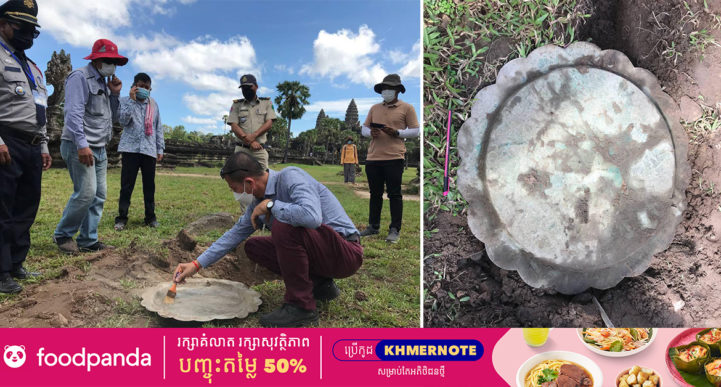 ខេត្តសៀមរាប៖ យោងតាមការចុះផ្សាយរបស់ អាជ្ញាធរជាតិអប្សរា បានឲ្យដឹងថា កាលពីព្រឹកថ្ងៃទី២៣ ខែវិច្ឆិកា ឆ្នាំ២០២១នេះ ក្រុមការងារអាជ្ញាធរជាតិអប្សរា បានប្រទះឃើញថាសលោហៈកប់ដីក្នុងដីនៅចន្លោះរានហាល និងបណ្ណាល័យខាងត្បូងប្រាសាទអង្គរវត្ត។ ថាសលោហៈនេះ មានទំហំអង្កត់ផ្ចិត ៦២ស.ម ជម្រៅបាតថាស ៣ ស.ម ផ្ទៃបាតរាងមូល និងរីកមាត់ឡើងមកលើបន្តិច និងបត់រាបស្មើ ដោយផ្នែកខាងចុងមានរាងក្បាច់កោងតូចៗពទ័្ធជុំវិញ។ នៅលើផ្ទៃថាសទាំងមូលនេះពុំឃើញមានក្បាច់លម្អ រឺអក្សរអ្វីដែលអាចអោយយើងកំណត់ពីអាយុកាលនៃវត្ថុនេះអោយបានច្បាស់លាស់នៅឡើយទេ។ បច្ចុប្បន្ន ក្រុមចុះបញ្ជីនៃនាយកដ្ឋានអភិរក្សប្រាសាទក្នុងឧទ្យានអង្គរ និងបុរាណវិទ្យាបង្ការ បានយកមករក្សាទុកជាបណ្តោះអាសន្ន នៅមជ្ឈមណ្ឌលជាតិអាជ្ញាធរជាតិអប្សរា ដើម្បីធ្វើការចុះបញ្ជី និងកំណត់អត្តសញ្ញាណវត្ថុបុរាណនេះជាដំបូងសិន មុននឹងលាងសម្អាត និងជួសជុលតាមបច្ចេកទេសជំនាញជួសជុលវត្ថុបុរាណជាបន្តទៀត ៕ ប្រភព៖ អាជ្ញាធរជាតិអប្សរា