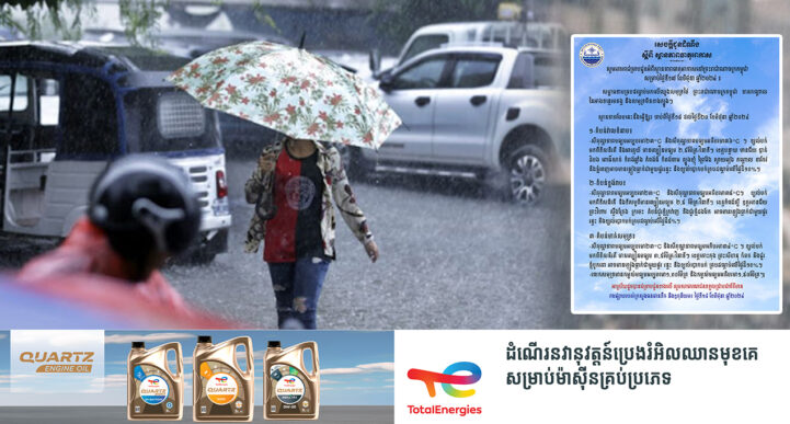 រាជធានីភ្នំពេញ៖ យោងតាមការចុះផ្សាយរបស់ ក្រសួងធនធានទឹក និងឧតុនិយម បានចេញសេចក្ដីជូនដំណឹងអំពីស្ថានភាពធាតុអាកាសនៅព្រះរាជាណាចក្រកម្ពុជាសម្រាប់ថ្ងៃទី១៨ ខែមិថុនា ឆ្នាំ២០២៤។ ក្រសួងធនធានទឹក បានឱ្យដឹងថា សម្ពាធទាបគ្របដណ្ដប់មកលើឈូងសមុទ្រថៃ ព្រះរាជាណាចក្រកម្ពុជា ភាគកណ្តាលនៃអាងទន្លេមេគង្គ និងសមុទ្រចិនខាងត្បូង។ ស្ថានភាពបែបនេះនឹងធ្វើឱ្យចាប់ពីថ្ងៃទី១៨ ដល់ថ្ងៃទី២០ ខែមិថុនា ឆ្នាំ២០២៤៖ ១-តំបន់វាលទំនាប៖ -សីតុណ្ហភាពមធ្យមអប្បបរមា២៣°C និងសីតុណ្ហភាពមធ្យមអតិបរមា៣៦°C ។ ខ្យល់បក់ មកពីទិសនិរតី និងអាគ្នេយ៍ មានល្បឿនមធ្យម ២,៥ម៉ែត្រ/វិនាទី។ ខេត្តបន្ទាយមានជ័យ បាត់ដំបង ពោធិ៍សាត់ កំពង់ឆ្នាំង កំពង់ធំ កំពង់ចាម ត្បូងឃ្មុំ ព្រៃវែង