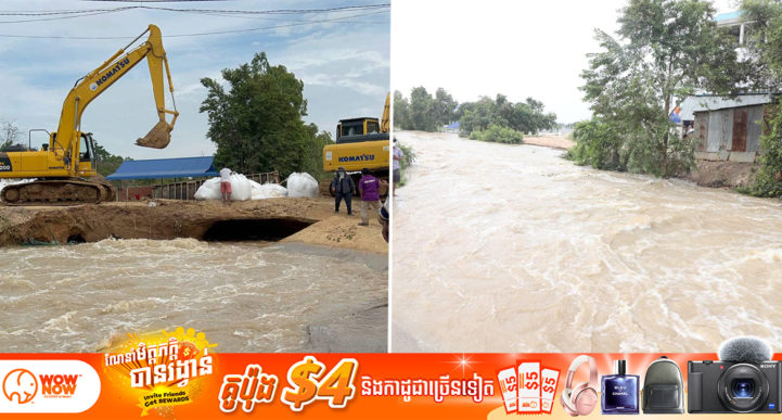 រាជធានីភ្នំពេញ៖ យោងតាមចុះផ្សាយរបស់ ទូរទស្សន៍ជាតិកម្ពុជា ទទក បានឲ្យដឹងថា ឯកឧត្តម ឃួង ស្រេង អភិបាលរាជធានីភ្នំពេញ នៅព្រឹកថ្ងៃទី២៧ ខែតុលា ឆ្នាំ២០២១នេះ បានដឹកនាំក្រុមមន្ត្រីជំនាញ អាជ្ញាធរមូលដ្ឋាន កងកម្លាំងទាំងបីប្រភេទ កម្លាំងបញ្ជារការដ្ឋានកងអង្គរ័ក្ស ដើម្បីត្រួតពិនិត្យស្ថានភាពបាក់ដាច់ទ្វារទប់ទឹកមួយកន្លែង ដែលបង្កដោយសារជំនន់ស្ទឹងព្រែកត្នោត។ តាមការអោយដឹងពីមន្ត្រីមូលដ្ឋានបានអោយដឹងថា ទ្វារទប់ទឹកមួយកន្លែងនេះ មានទីតាំងនៅចន្លោះរវាងក្នុងភូមិសាលា និងភូមិកន្តុយទឹក សង្កាត់ទៀន ខណ្ឌដង្កោ រាជធានីភ្នំពេញ បានបាក់ទំនប់តាំងពីម៉ោងប្រមាណ១២៖៣០នាទីយប់ថ្ងៃទី២៦ ឈានដល់ថ្ងៃទី២៧ ខែតុលា ឆ្នាំ២០២១។ ហើយការបាក់ដាច់ទ្វារទប់ទឹកនៅត្រង់ចំនុច ភូមិកន្តុយទឹក សង្កាត់ទៀន ខណ្ឌដង្កោ រាជធានីភ្នំពេញ