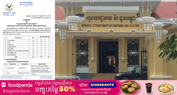យោងតាមការបញ្ជាក់ពី នាយកដ្ឋានបុគ្គលិក នៃក្រសួងសេដ្ឋកិច្ចនិងហិរញ្ញវត្ថុ បានចេញសេចក្ដីជូនដំណឹងស្ដីពីការប្រឡងជ្រើសរើសបេក្ខជនជាមន្ត្រីរាជការឱ្យចូលបម្រើការងារនៅអគ្គនាយកដ្ឋានគយនិងរដ្ឋាករកម្ពុជា នៃក្រសួងសេដ្ឋកិច្ចនិងហិរញ្ញវត្ថុ ដោយក្រសួងនឹងរៀបចំការប្រឡងជើសរើសបេក្ខជនមន្ត្រីរាជការ ទាំងពីរភេទ ចំនួន ៥០នាក់ (ប្រភេទក្របខណ្ឌ “ក” ចំនួន ៣០រូប និង “ខ” ចំនួន ២០រូប) ឲ្យចូលបម្រើការងារនៅអគ្គនាយកដ្ឋានគយនិងរដ្ឋាករកម្ពុជា ក្រសួងសេដ្ឋកិច្ចនិងហិរញ្ញវត្ថុ តាមតារាងបែងចែកក្របខណ្ឌ និងលក្ខខណ្ឌកំណត់ដូចខាងក្រោម៖