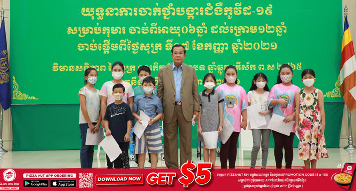 នៅព្រឹកថ្ងៃសុក្រ ១១កើត ខែភទ្របទ ឆ្នាំឆ្លូវ ត្រីស័ក ព.ស. ២៥៦៥ ត្រូវនឹង ថ្ងៃទី១៧ ខែកញ្ញា ឆ្នាំ២០២១ នេះ សម្តេចអគ្គមហាសេនាបតីតេជោ ហ៊ុន សែន នាយករដ្ឋមន្ត្រីនៃព្រះរាជាណាចក្រកម្ពុជា បានអញ្ជើញប្រកាសបើកយុទ្ធនាការថ្មីមួយទៀត គឺការចាក់វ៉ាក់សាំងបង្ការជំងឺកូវីដ-១៩ ជូនដល់កុមារអាយុចាប់ពី ៦ឆ្នាំ ដល់ ១២ឆ្នាំ ដែលធ្វើឡើងនៅវិមានសន្តិភាព រាជធានីភ្នំពេញ។ ជាមួយនឹងការប្រកាសបើកយុទ្ធនាការចាក់វ៉ាក់សាំងជូនកុមារអាយុចន្លោះពី ៦ឆ្នាំ ទៅ១២ឆ្នាំនេះ ចៅៗរបស់សម្តេចតេជោ និងចៅៗរបស់ឥស្សរជនជាន់ខ្ពស់ រាជរដ្ឋាភិបាលកម្ពុជាមួយចំនួនទៀត នឹងត្រូវមកទទួលវ៉ាក់សាំងបើកយុទ្ធនាការនេះផងដែរ។ ការចាក់វ៉ាក់សាំងជូនដល់កុមារអាយុចន្លោះពី ៦ឆ្នាំ ទៅ