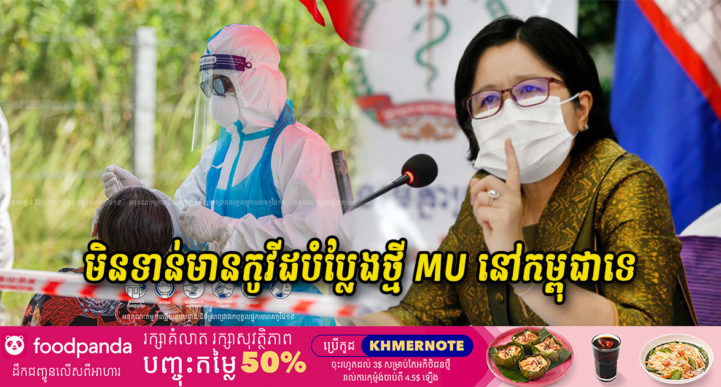 ភ្នំពេញ៖ យោងតាមការចុះផ្សាយរបស់ក្រសួងព័ត៌មាន បានឲ្យដឹងថា មន្រ្តីជាន់ខ្ពស់សុខាភិ បាល បញ្ជាក់ថា វីរុសកូវីដ- ១៩បំប្លែងថ្មី ប្រភេទមូ (MU) នៅកម្ពុជាមិនទាន់មាននៅឡើយទេ ខណៈវីរុសបំប្លែងថ្មីប្រភេទមូនេះ បានកើតមាន ឡើងនៅតាមបណ្ដាប្រទេស ៣០ ទៅ៤០រួចហើយនៅលើសកលលោក ។ ថ្លែងប្រាប់អ្នកសារព័ត៌មាន ក្នុងពិធីប្រកាសបិទបញ្ចប់យុទ្ធនាការចាក់វ៉ាក់សាំងកូវីដ-១៩ ជុំទី១ ជូនប្រជាពល រដ្ឋអាយុពី ១៨ឆ្នាំឡើង នៅខេត្តស្វាយរៀង នាថ្ងៃទី១៣ ខែកញ្ញា ឆ្នាំ២០២១ លោក ជំទាវ ឱ វណ្ណឌីន រដ្ឋលេខាធិ ការ និងជាអ្នកនាំពាក្យក្រសួង