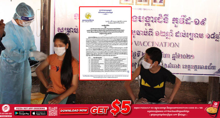 រដ្ឋបាលរាជធានីភ្នំពេញ បានចេញសេចក្ដីជូនដំណឹង ស្ដីពីការក្រើនរំលឹកដល់មាតាបិតា-អាណាព្យាបាល និងអ្នកគ្រប់គ្រងមណ្ឌលថែទាំកុមារ ក្នុងភូមិសាស្ត្ររាជធានីភ្នំពេញ ដើម្បីនាំយកកុមារ និងយុវជនមានអាយុចាប់ពី ១២ឆ្នាំ ដល់ក្រោម ១៨ឆ្នាំ អញ្ជើញមកទទួលវ៉ាក់សាំងការពារជំងឺកូវីដ-១៩ ឱ្យបានមុនពេលបិទបញ្ចប់យុទ្ធនាការ។ បញ្ចប់យុទ្ធនាការនៅថ្ងៃទី១៧ ខែកញ្ញា ឆ្នាំ២០២១ រៀងរាល់ម៉ោង ៨:០០នាទីព្រឹក ដល់ម៉ោង ៥:០០នាទីរសៀល នៅតាមទីតាំងមន្ទីរពេទ្យបង្អែក ចំនួន ០៩ទីតាំង ដែលនៅជិតលំនៅឋាន ឬមណ្ឌលរបស់លោកអ្នក៕