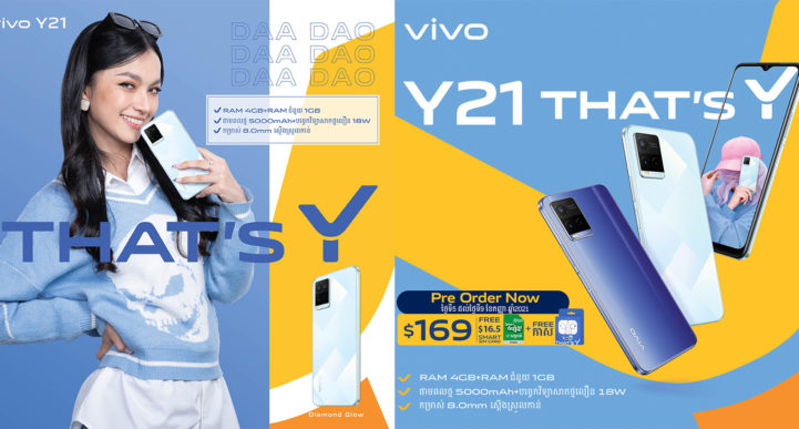 That’s Y គឺជាស្មាតហ្វូនត្រកូល Y ម៉ូឌែល vivo Y21 ដែលមានតម្លៃទាបត្រឹមតែ$169 និងមានគុណសម្បត្តិច្រើន បើធៀបទៅនឹងស្មាតហ្វូនដ៏ទៃដែលមានតម្លៃប្រហាក់ប្រហែល។ ចំពោះការបង្ហាញខ្លួនរបស់ That’s Y នៃស្មាតហ្វូន vivo Y21 គឺត្រូវបានធ្វើការរចនាឡើងយ៉ាងល្អឥតខ្ចោះជាមួយនឹងរូបរាងដ៏ស្តើងកម្រាស់ត្រឹម 8.0mm ទម្ងន់ 182g ផ្តល់មកជាមួយនឹងជម្រើសពីរពណ៌គឺ ពណ៌ខៀវហៅថា Metallic Blue និងពណ៌ត្បូងពេជ្រហៅថា Diamond Glow ផ្ទៃខ្នងខាងក្រោយរបស់ vivo Y21 ស្រោបដោយជ័រ Plastic មានភាពរលោងដូចកញ្ចក់។ ចំពោះផ្ទៃអេក្រង់ធំទូលាយទំហំ